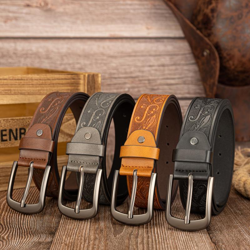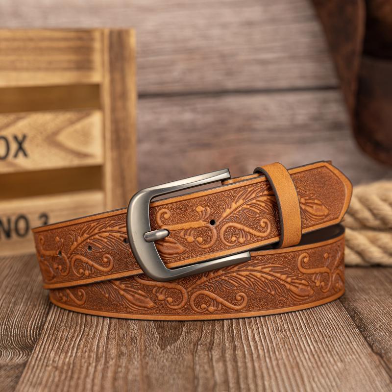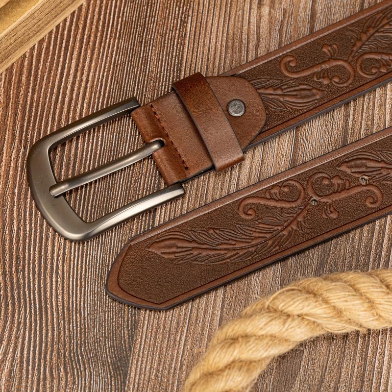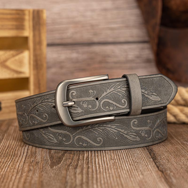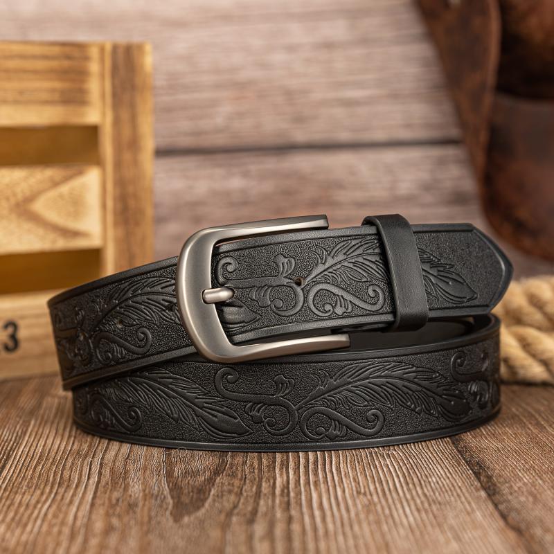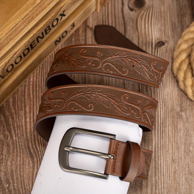 Add a touch of elegance to your outfit with this waist belt featuring a feather PU embossed design and a secure pin buckle closure.