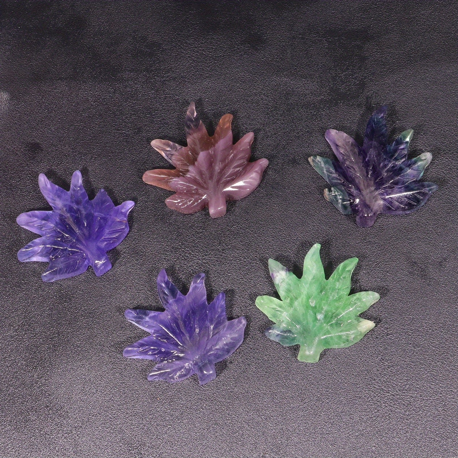 Fluorite Maple Leaf Crystal Statue Carving Figurine Reiki Healing Collection