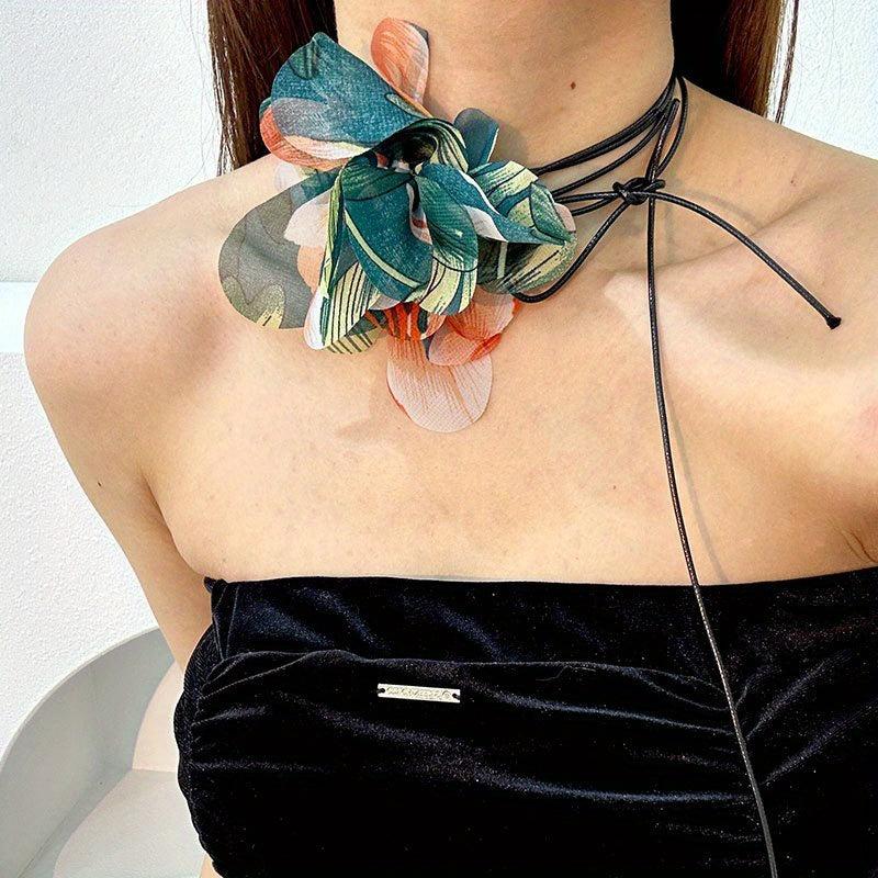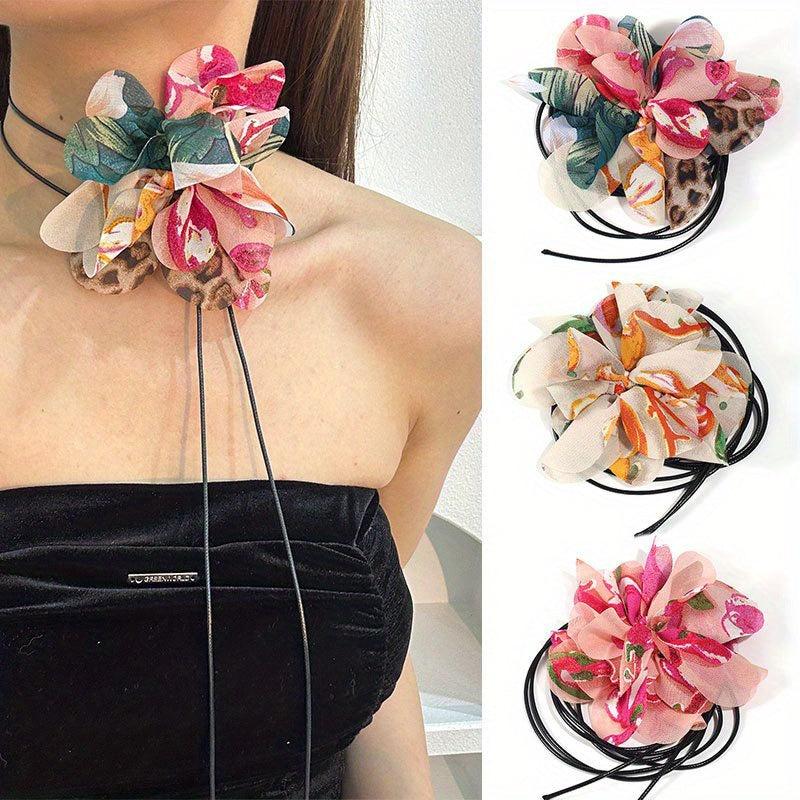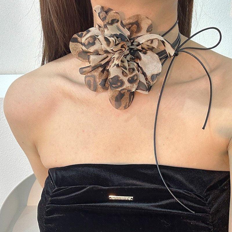 Add a touch of retro charm to your outfit with this unique multicolor leopard pattern flower wax rope necklace. Crafted with vibrant fabric patterns, this neck jewelry is a statement piece that will elevate your style.