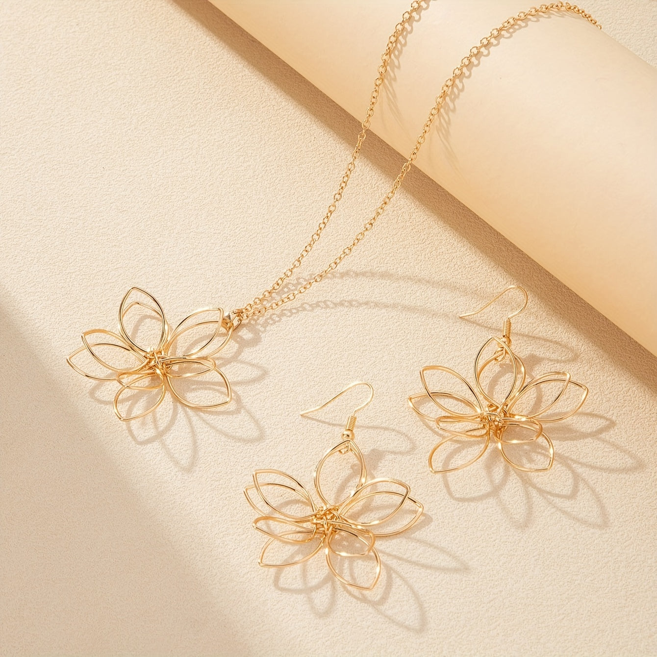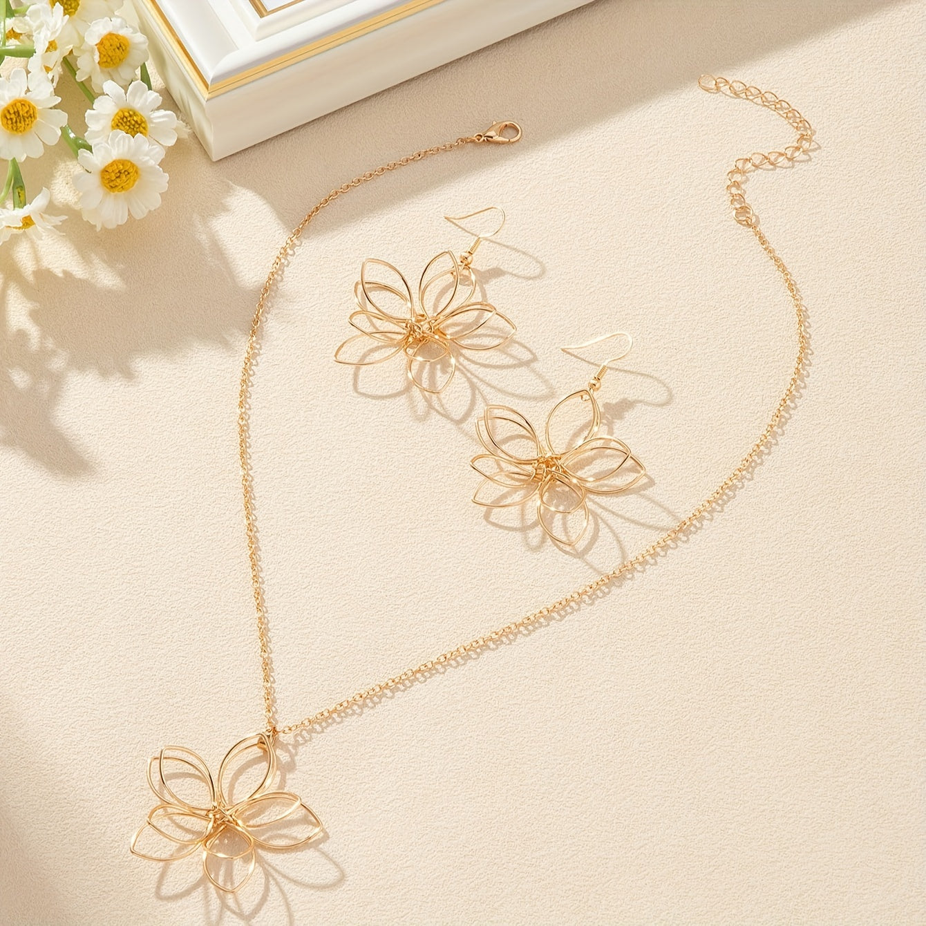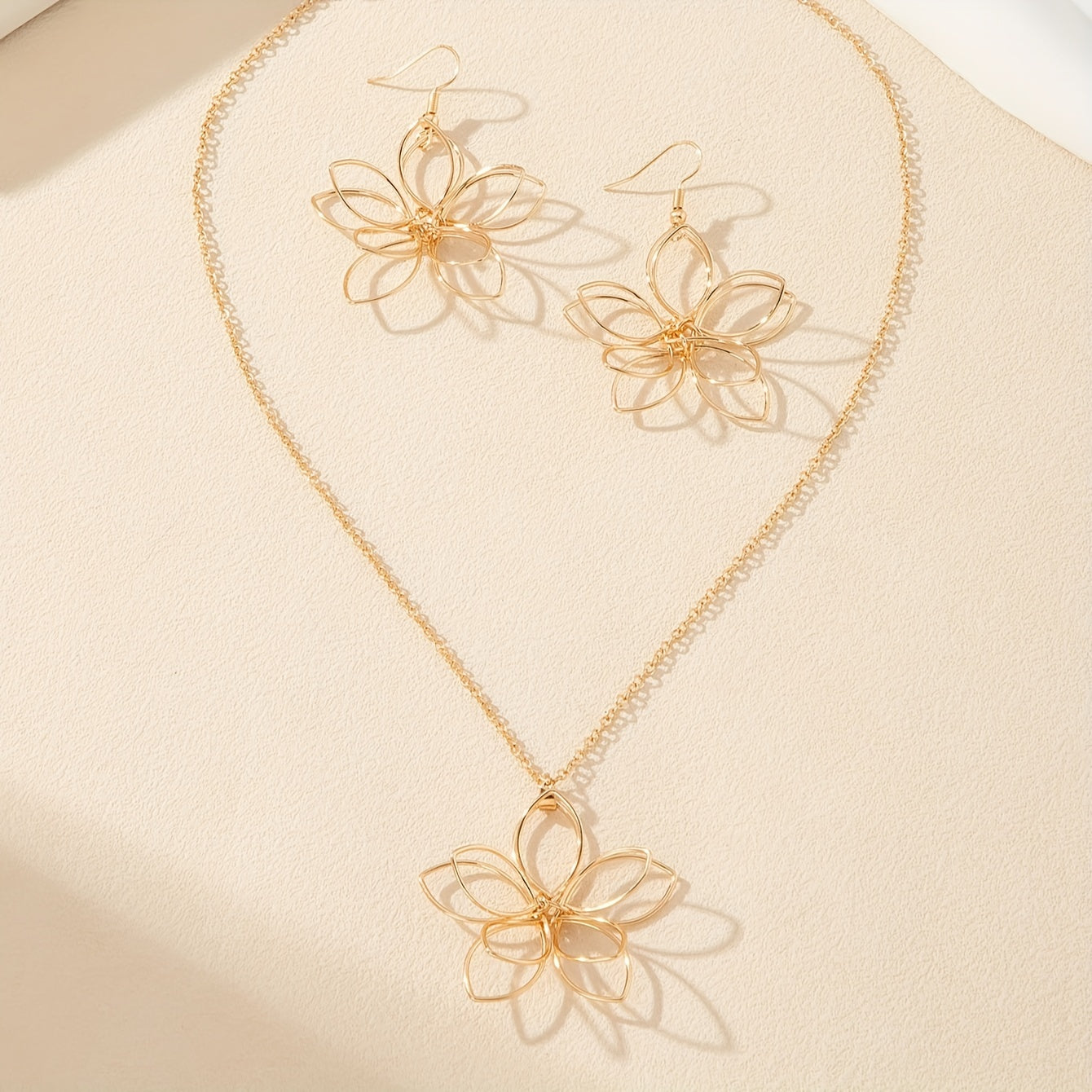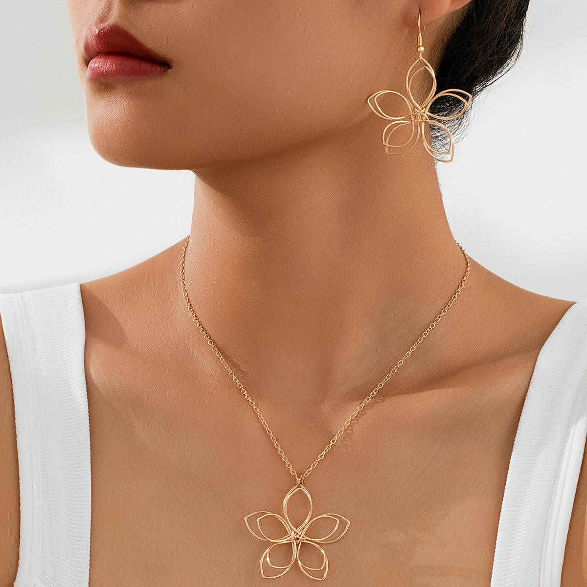 Elegant and timeless set inspired by French fashion. Includes a classic flower pendant necklace and matching earrings.