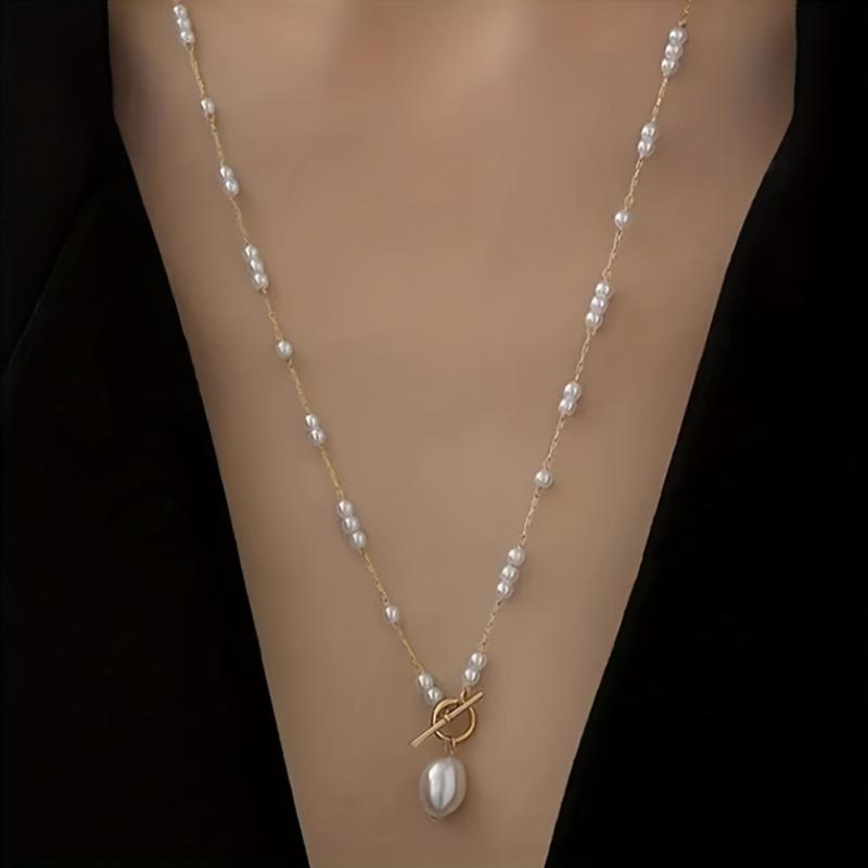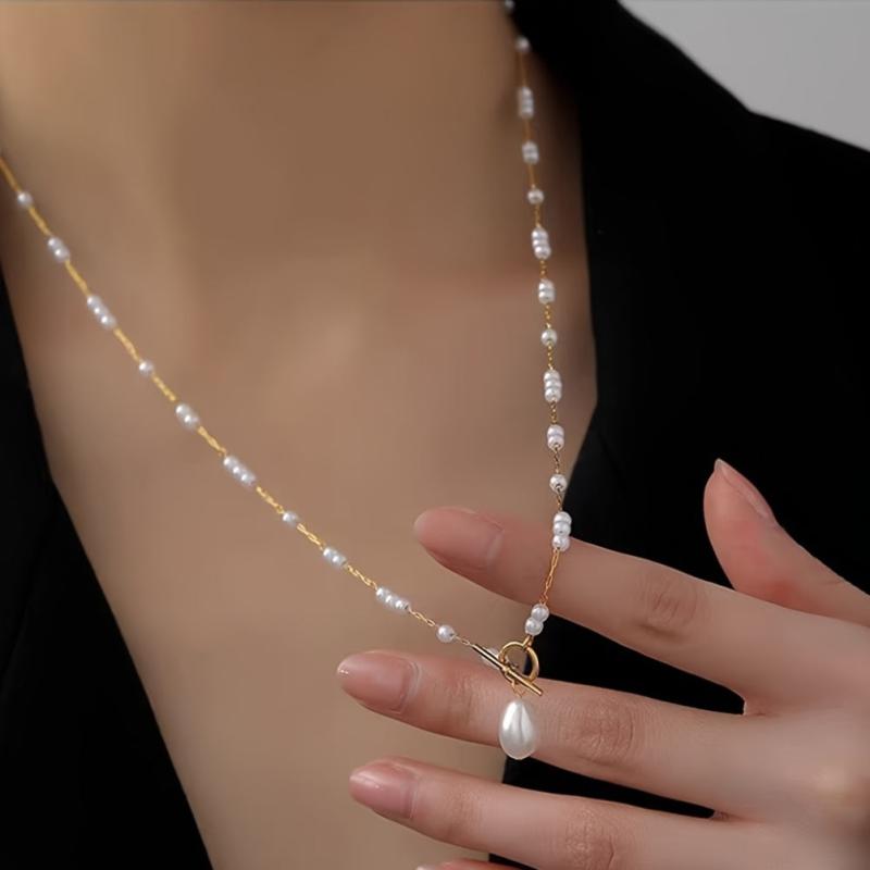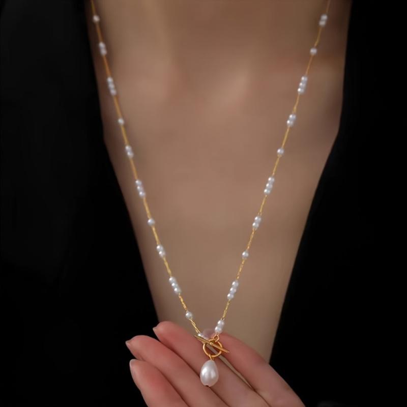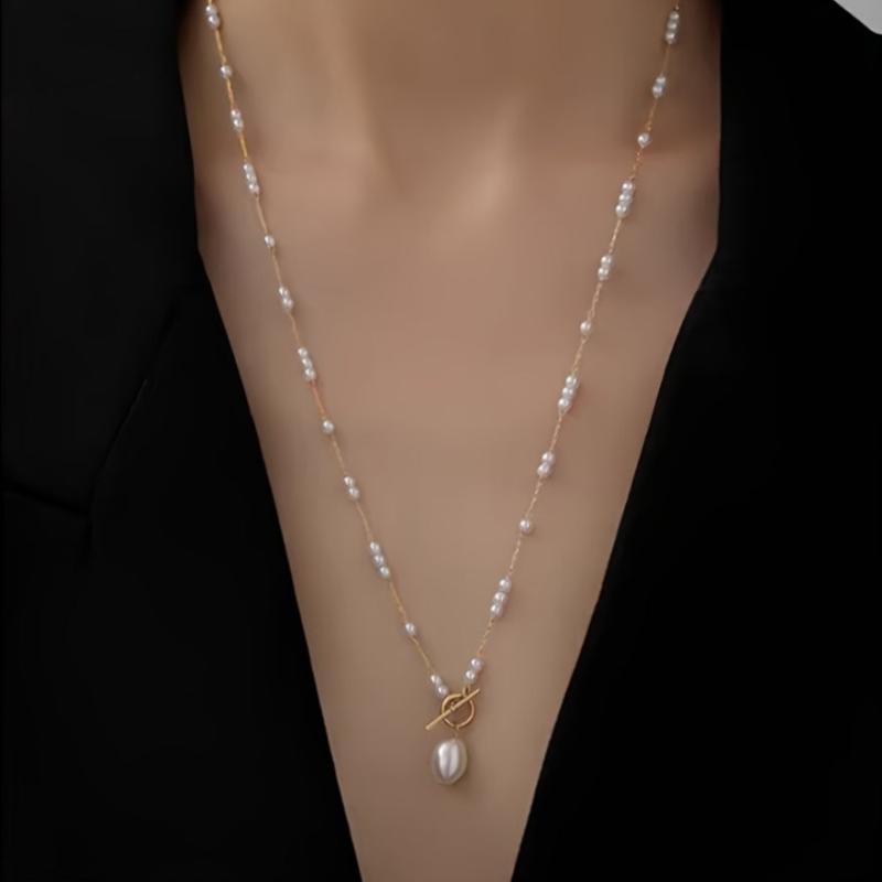 Freshwater Pearl Pendant Necklace with Golden Tone Clasp