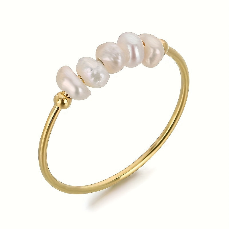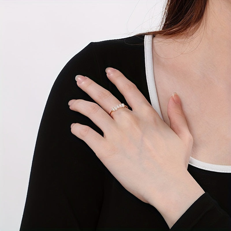 Add elegance to your look with this freshwater pearl ring featuring three pearls in a rose gold finish. Made of high-quality stainless steel, this ring is perfect for everyday wear or special occasions.