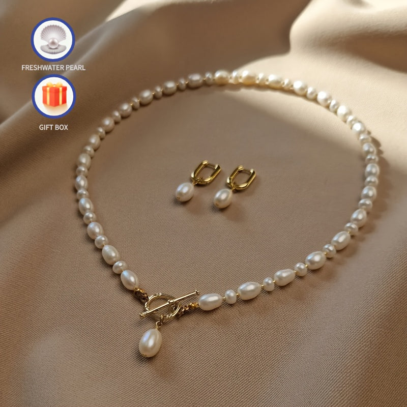Freshwater Pearls Necklace Earrings Set - Mother's Day Gift