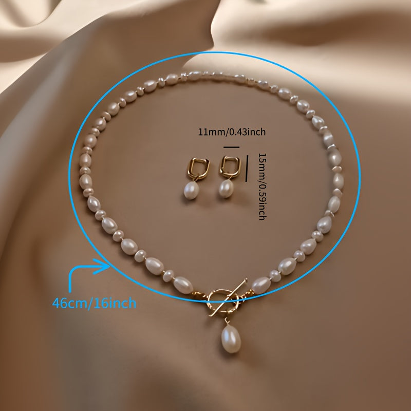 Freshwater Pearls Necklace Earrings Set - Mother&