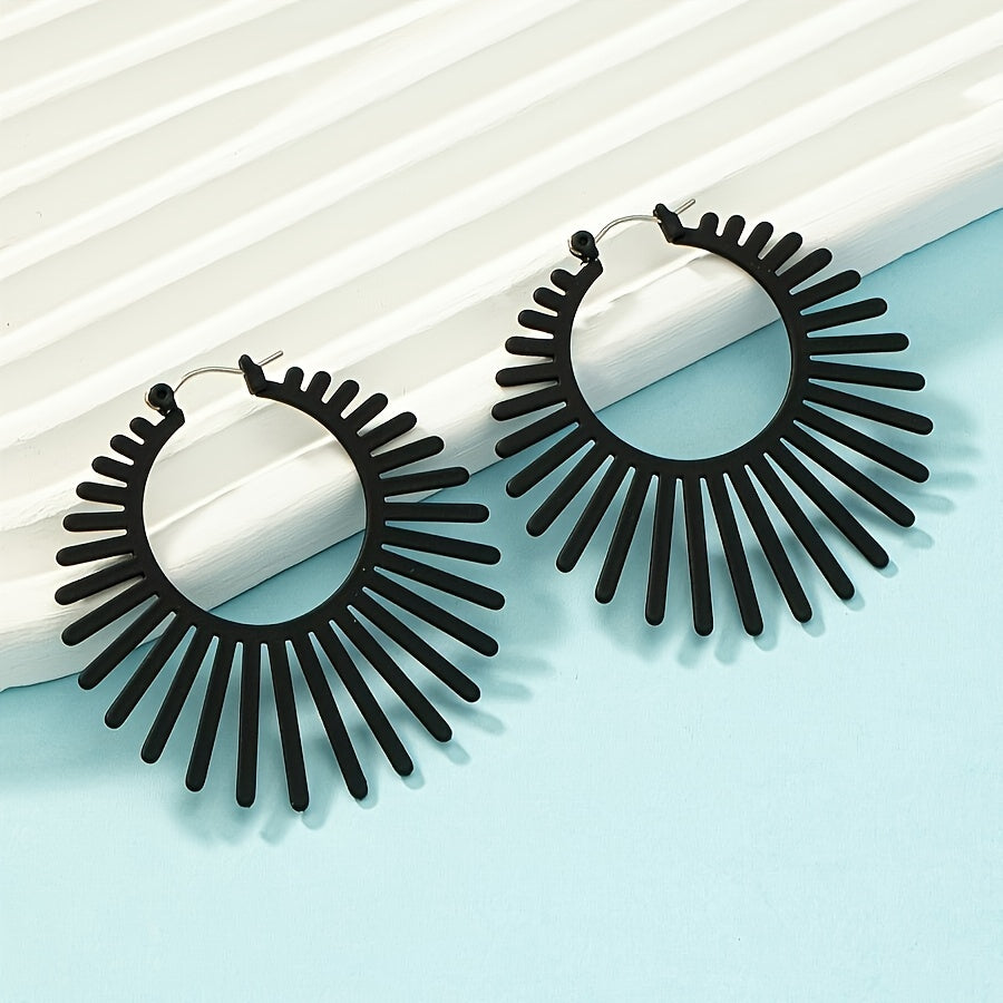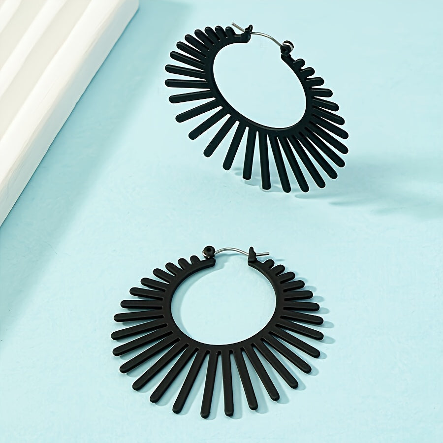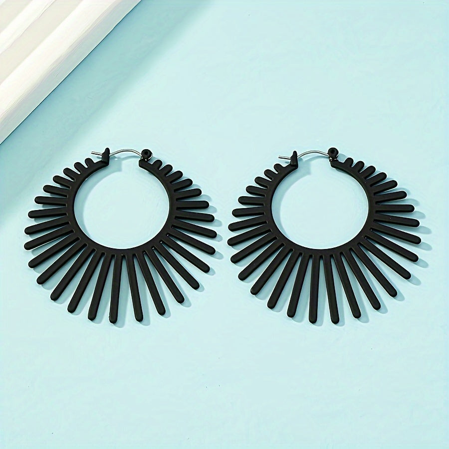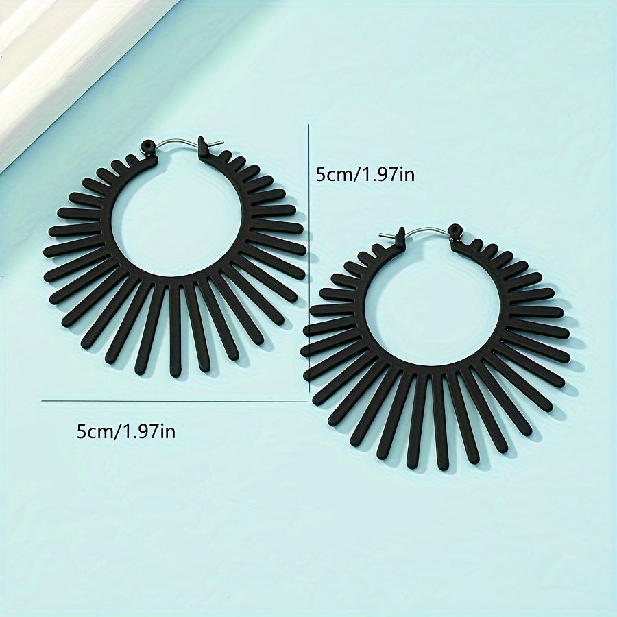 Add a touch of retro minimalism to your look with these geometric fan-shaped hoop earrings. Made of high-quality alloy with stainless steel posts, they are perfect for casual attire or vacation outfits.