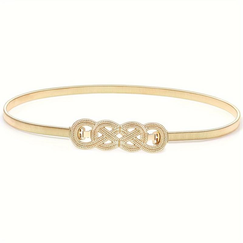 Geometric Golden Buckle Elastic Waist Belt for Women