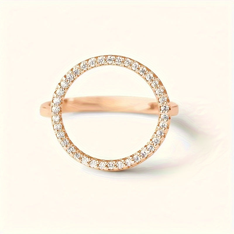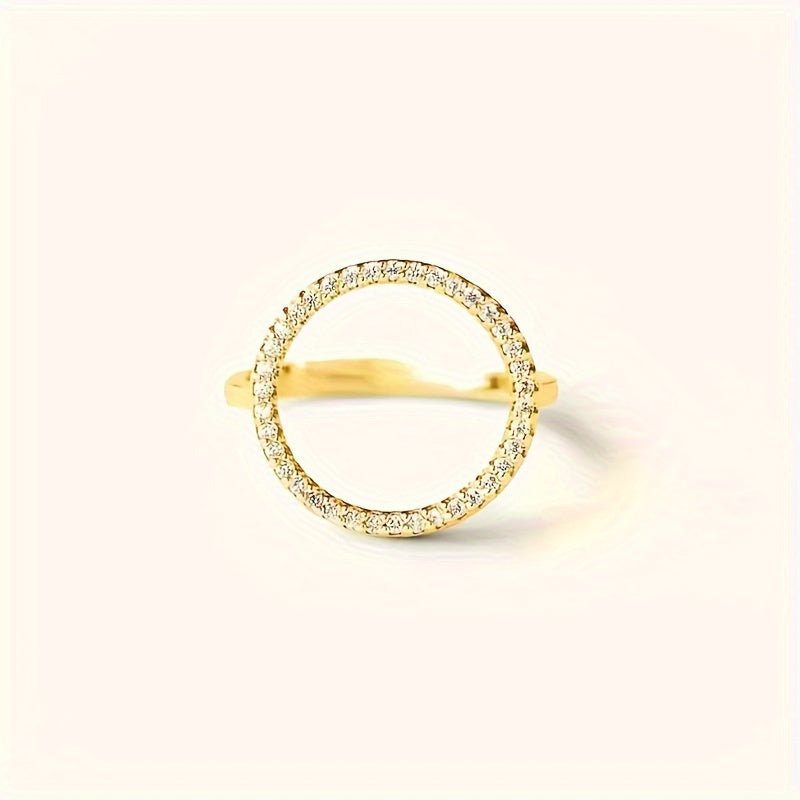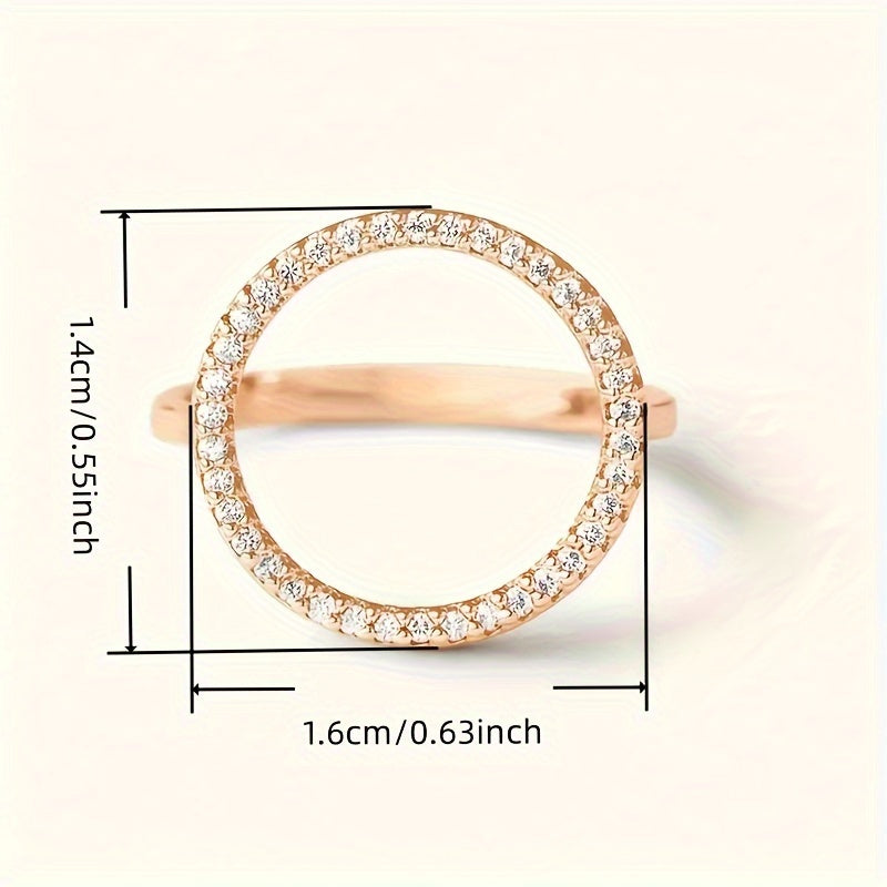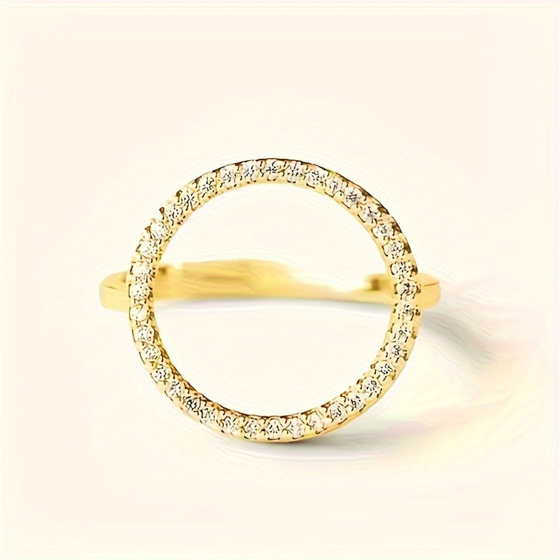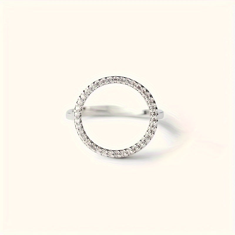 Elegant ring with round geometric hollow design and zirconia inlay. Ideal for everyday wear or vacation. Perfect gift for loved ones.