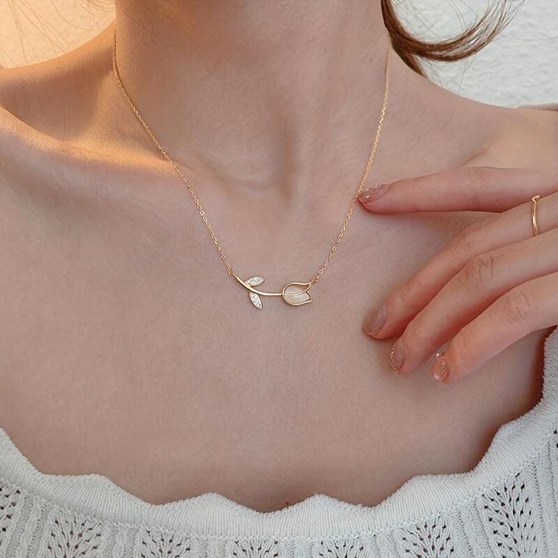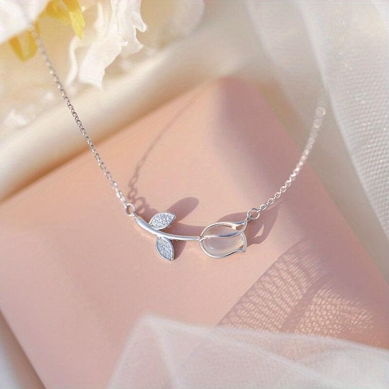 Girls Silvery Tulip Pendant Necklace Lightweight Jewelry