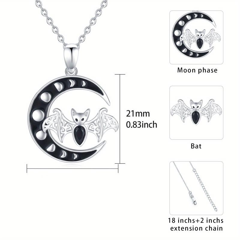 This Halloween-inspired necklace features a bat pendant, perfect for adding a touch of gothic style. Made from 925 sterling silver, it's a dainty piece of jewelry for women and girls.