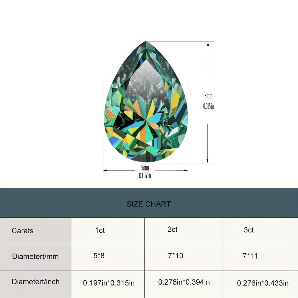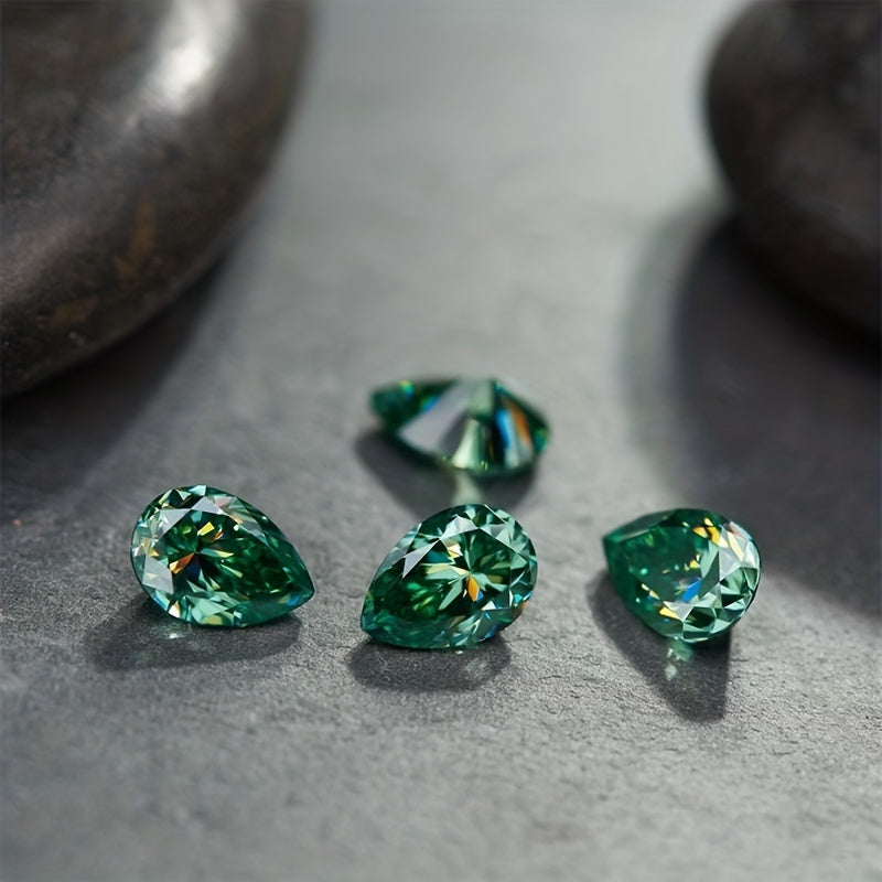 Beautiful green pear shape moissanite loose stone ideal for jewelry making. Available in 1ct and 3ct sizes. Perfect for matching stone sets.