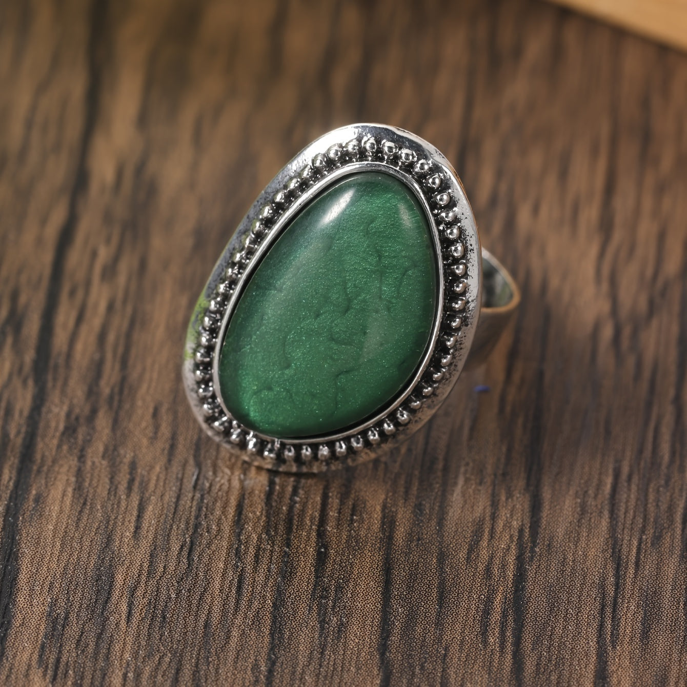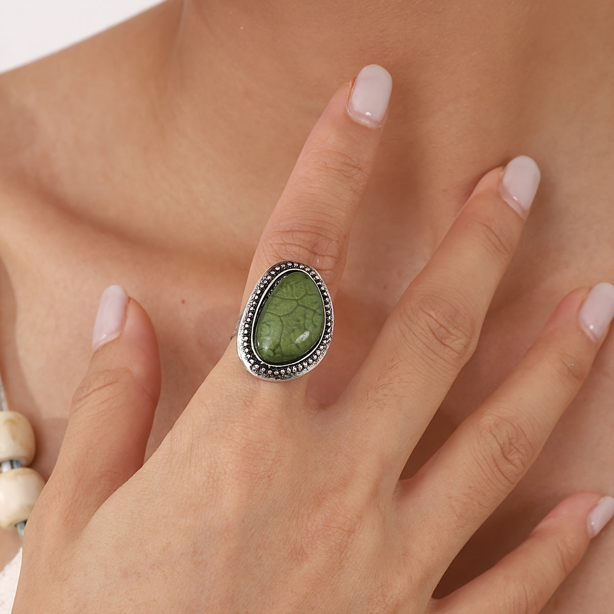 Add a touch of Bohemian style to your look with this fashionable retro ring set featuring green resin and stainless steel. Perfect for daily wear, travel, banquets, and rugby tournaments, or gift it to a loved one.