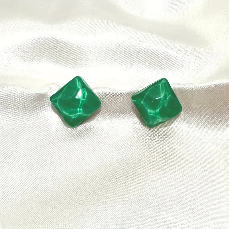 Green Resin Wave Stud Earrings Vintage Style Daily Wear Vacation