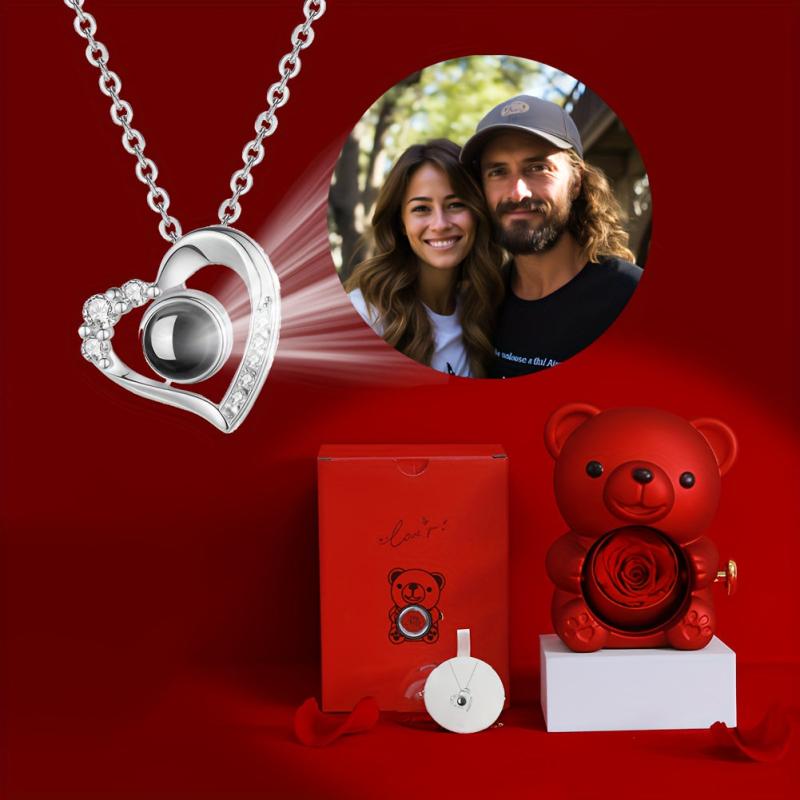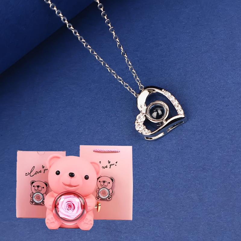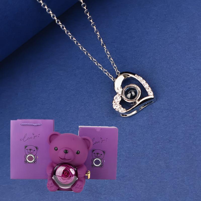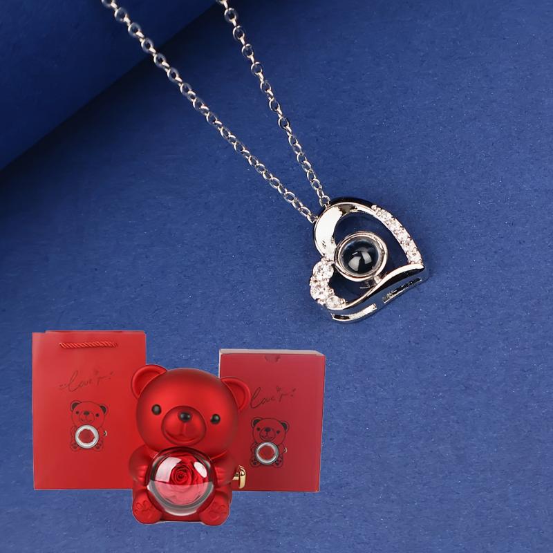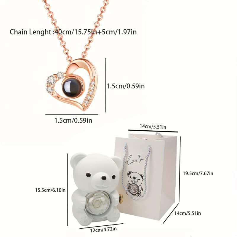This stunning necklace features a heart pendant with a rotating bear and synthetic zirconia stones. A perfect gift for romantic occasions like anniversaries or birthdays.
