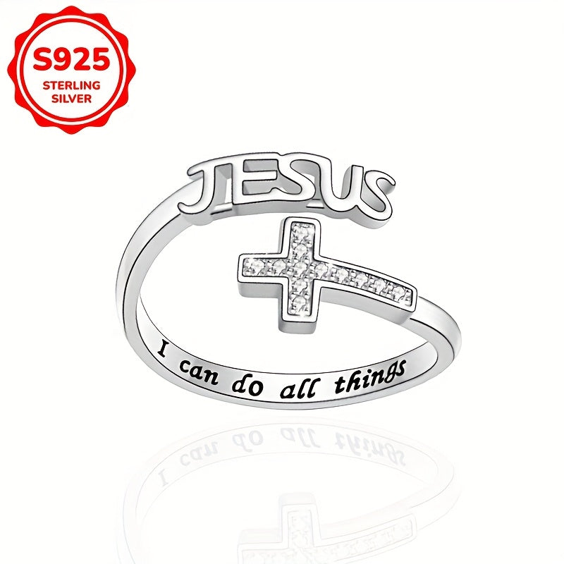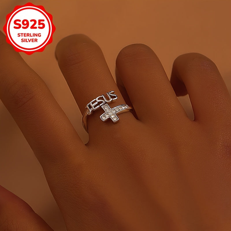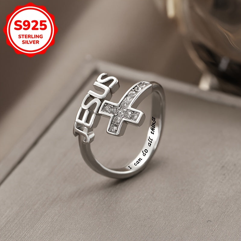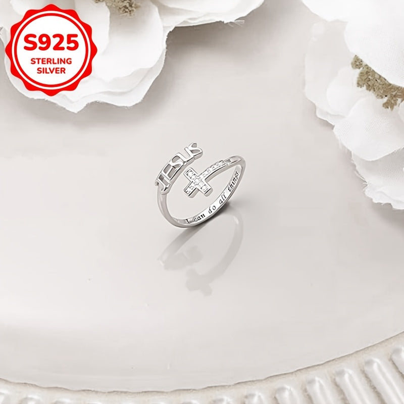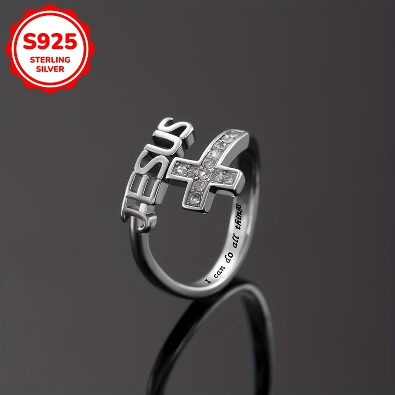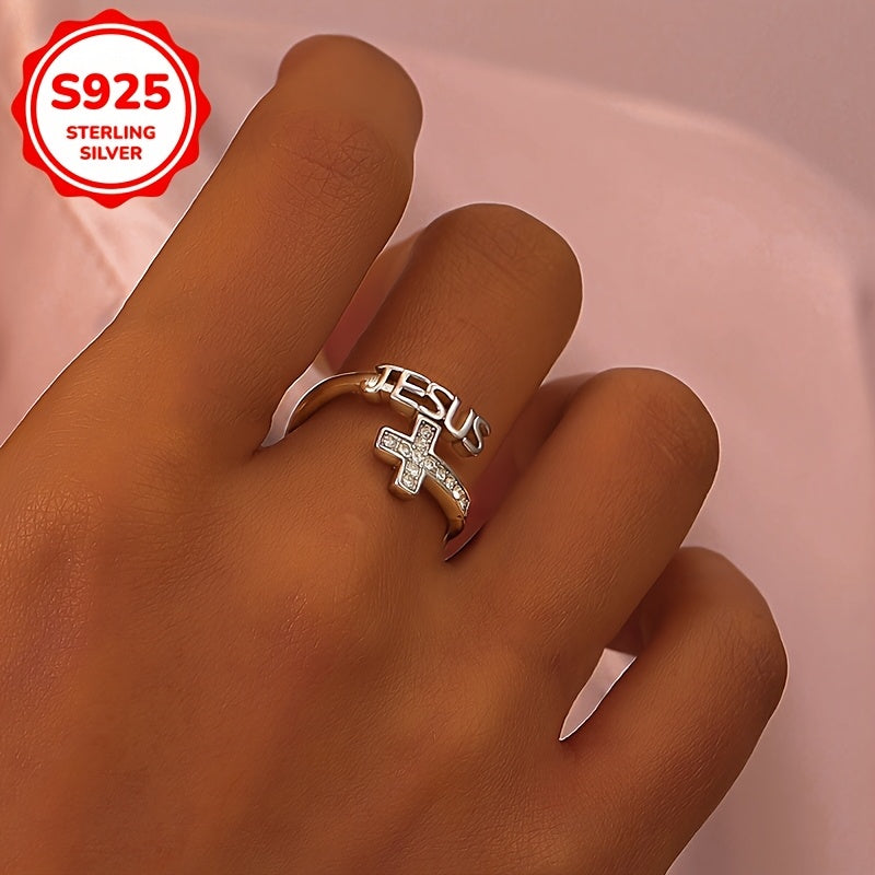 This Women's Open Ring features a Hip Hop design with Zirconia stones and an English Cross made of 925 Silver. It is lightweight at 3G and hypoallergenic, perfect for everyday wear.