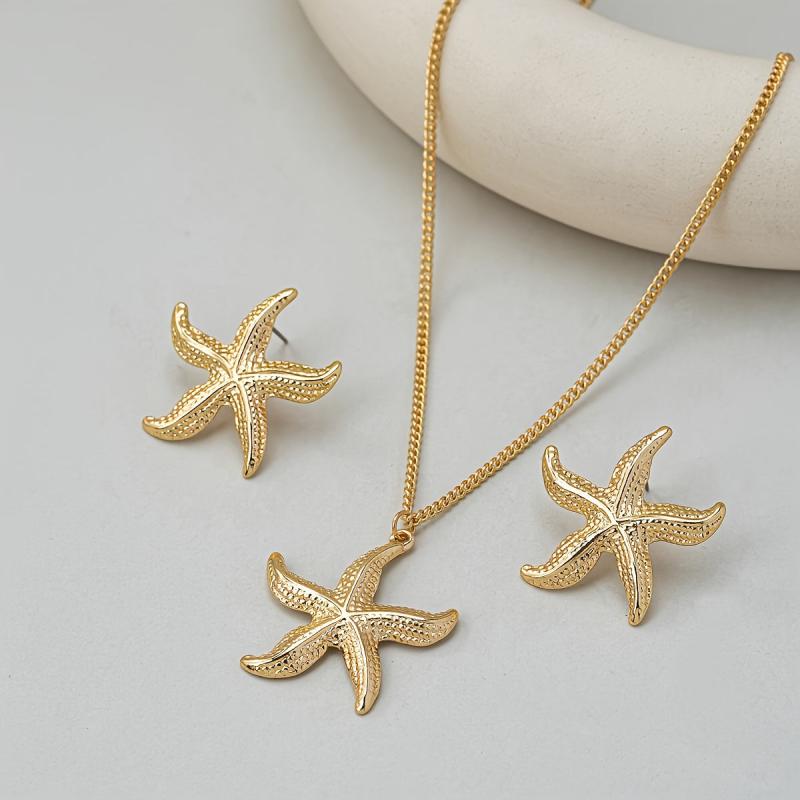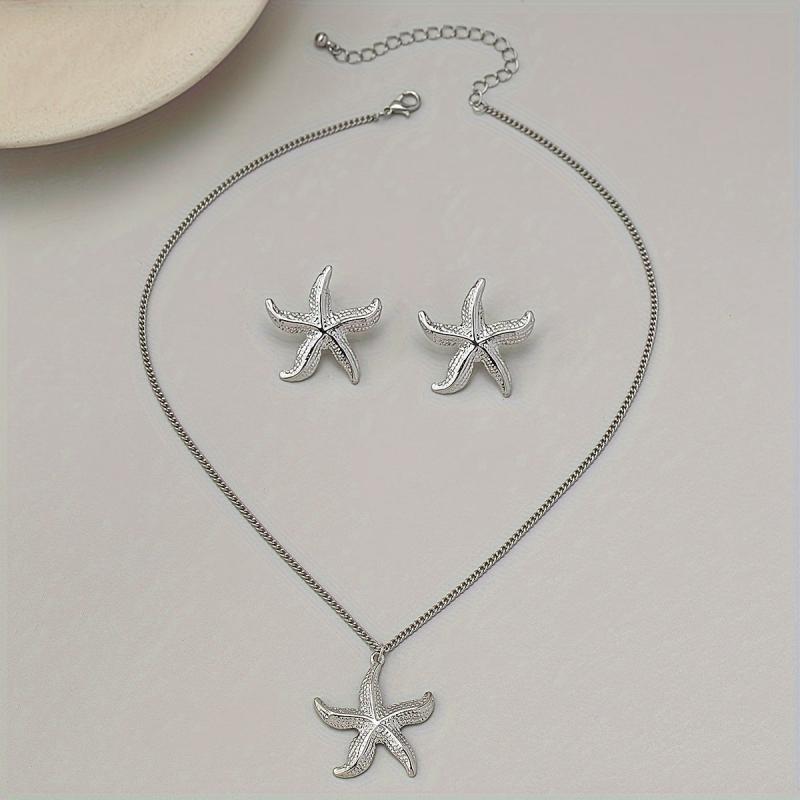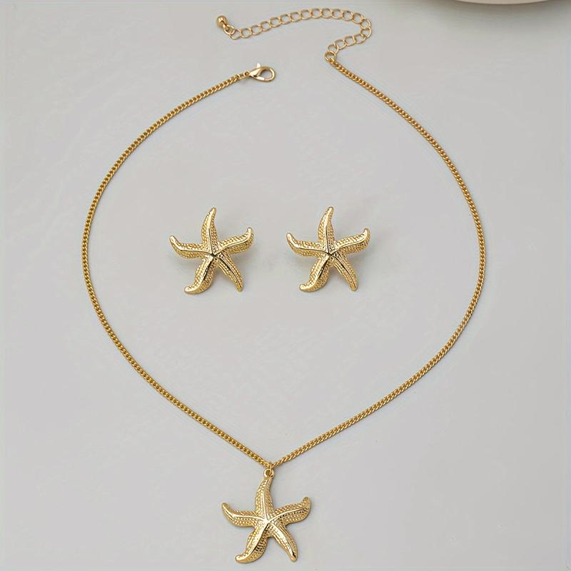 • Vintage-style iron starfish necklace and earrings set