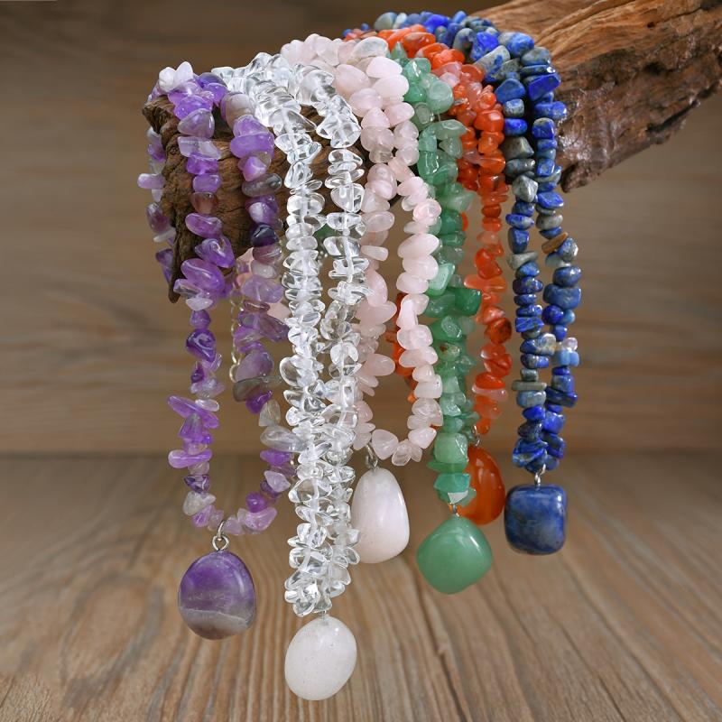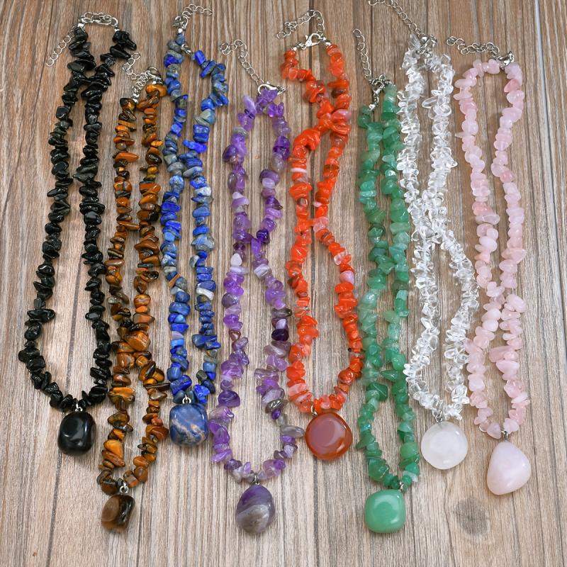 Irregular Natural Stone Pendant Necklace - Women Boho Vacation Jewelry