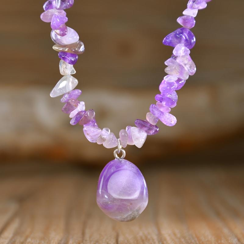 • Features amethyst, rose quartz, carnelian, lapis, and gravel beads