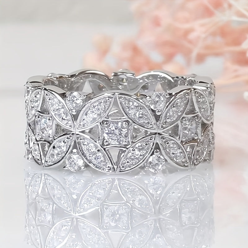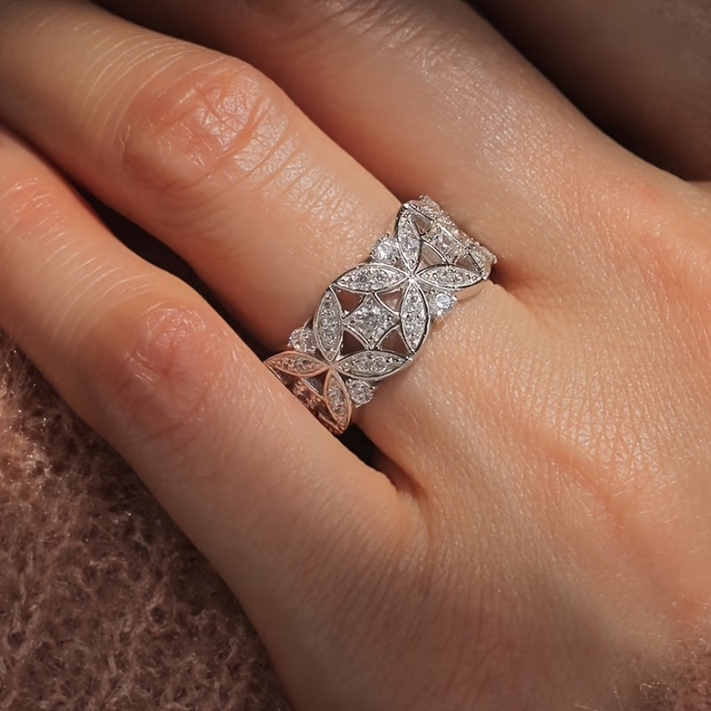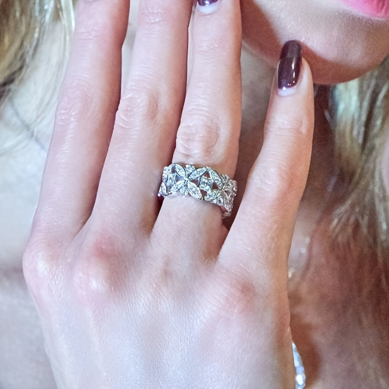 Add a touch of glamour with this stunning floral cubic zirconia ring. Perfect for engagement, weddings, or everyday wear. Makes a great April birthstone gift too!