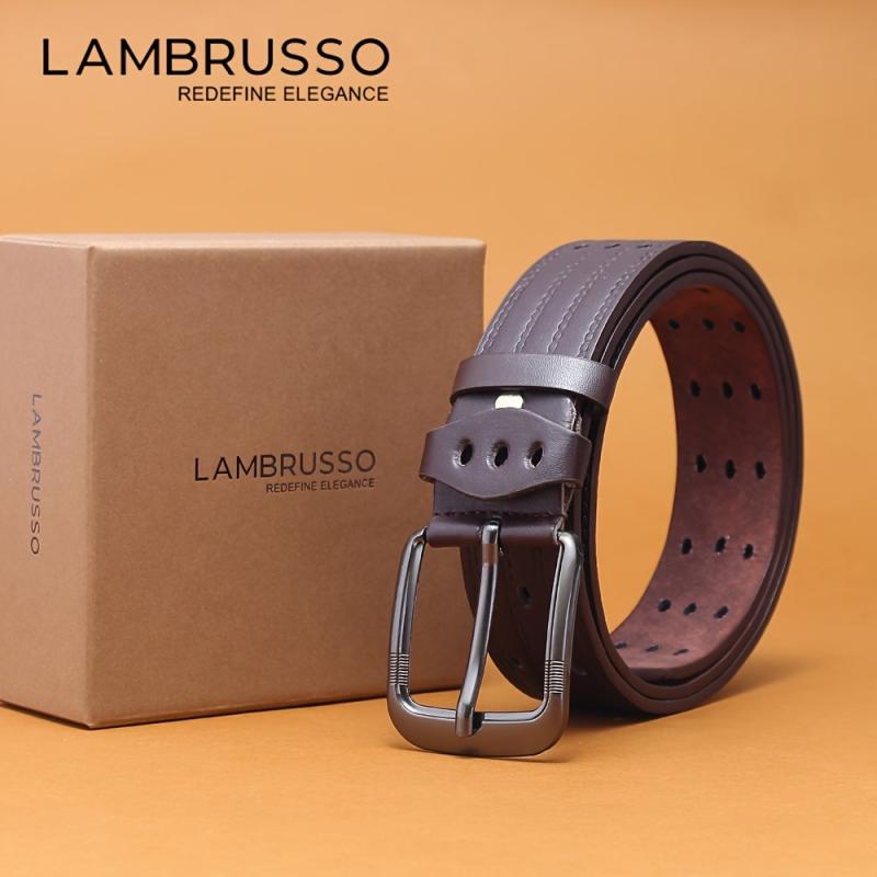 Add a touch of classic business style to your outfit with this casual belt from LAMBRUSSO. Crafted from high-quality faux leather and featuring a stylish alloy buckle, this belt is perfect for everyday wear.