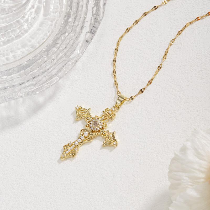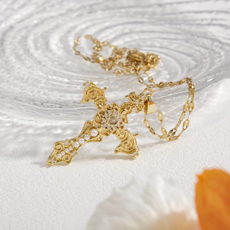 Hypoallergenic stainless steel necklace with a vintage and classic style, adorned with synthetic zirconia. Perfect accessory for any outfit.