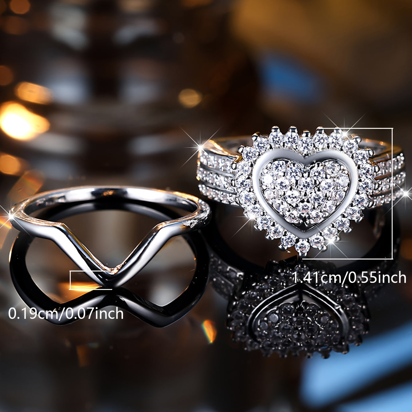 Add a touch of elegance to your outfit with this classic silvery stacking ring featuring a love heart arrow design with inlaid zirconia. Perfect for weddings, parties, and as a birthday gift for her.