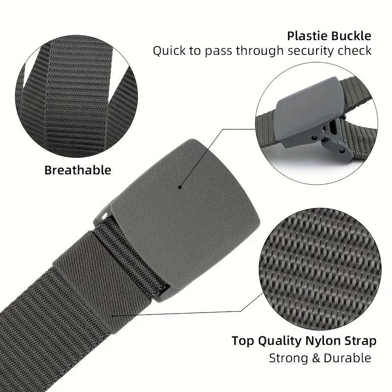 This tactical waistband is made of durable nylon and features a plastic buckle. It is adjustable, hypoallergenic, and suitable for casual wear or outdoor activities like hiking, skiing, or riding.