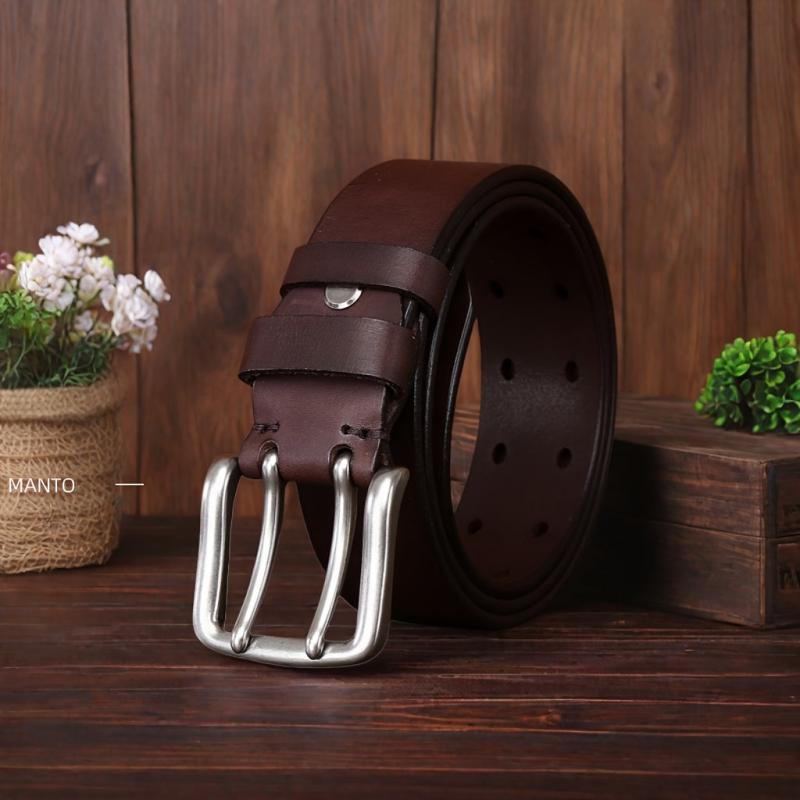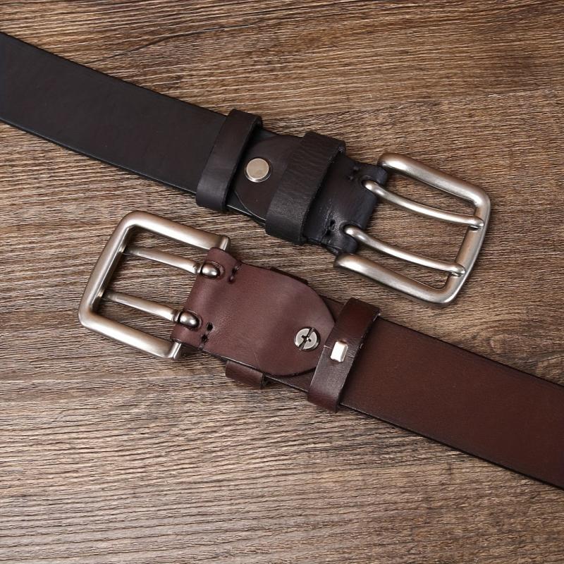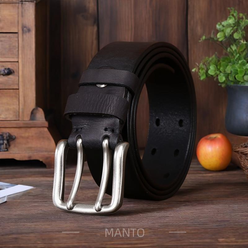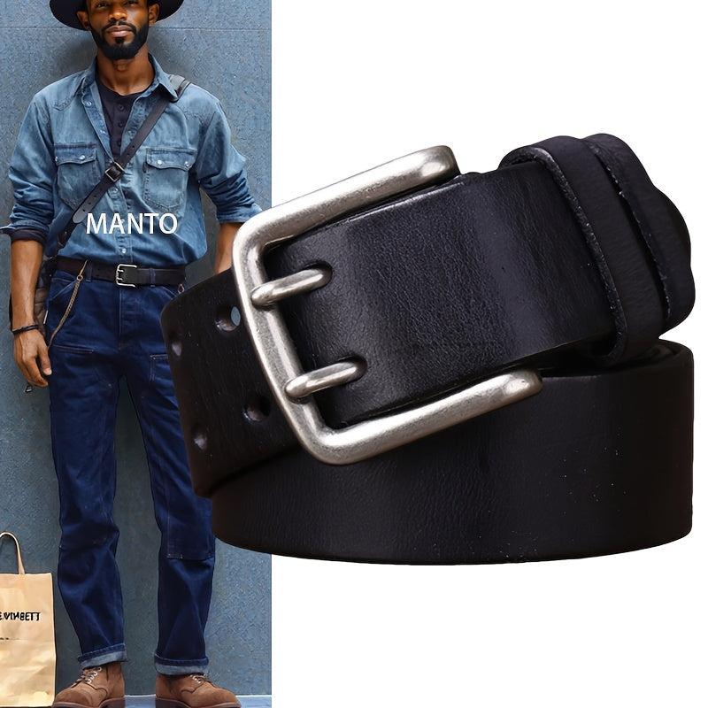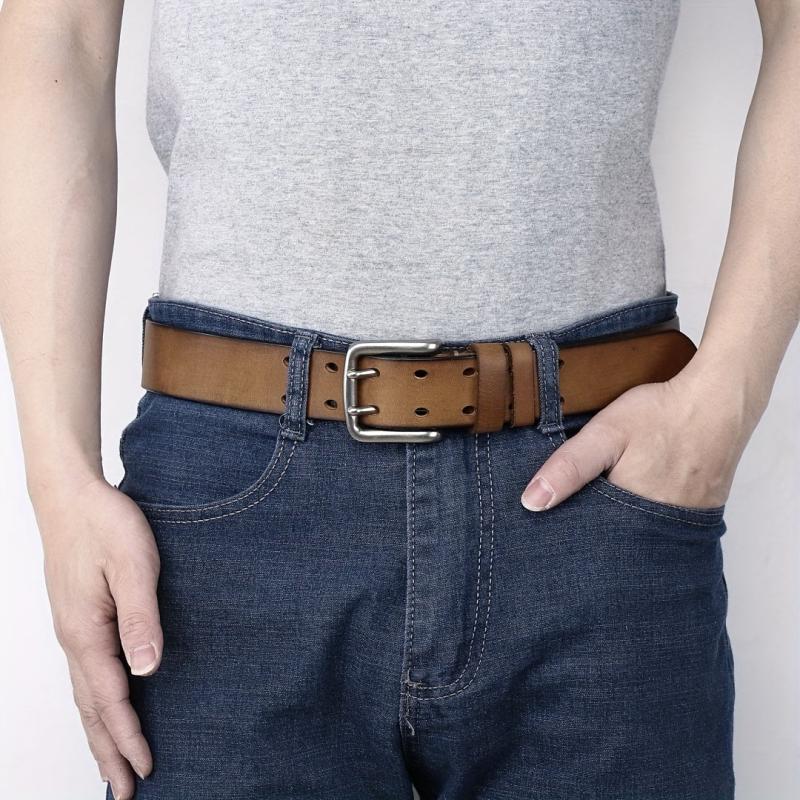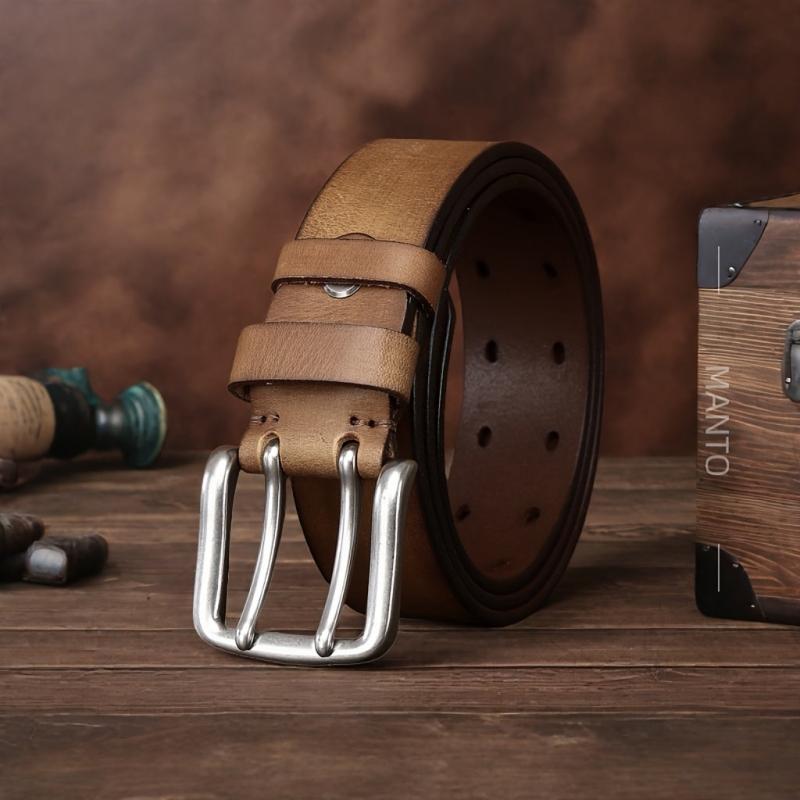 Upgrade your style with this vintage washed khaki leather belt featuring a unique double buckle design.