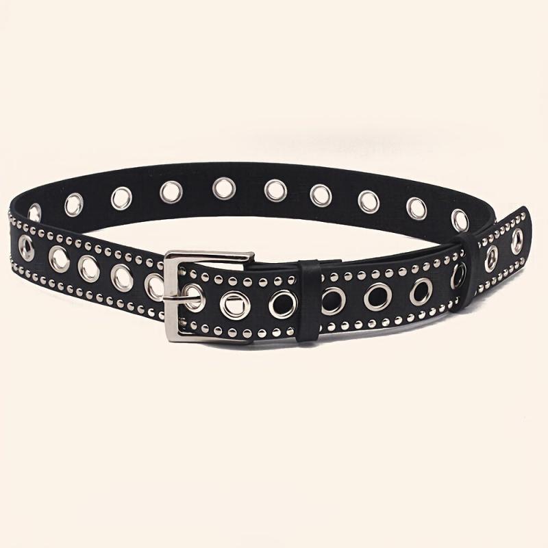 Stay stylish with these punk eyelet rivet belts that are perfect for men and women. Made of high-quality PU material, these adjustable belts feature a pin buckle design that adds a touch of glam to your outfit.