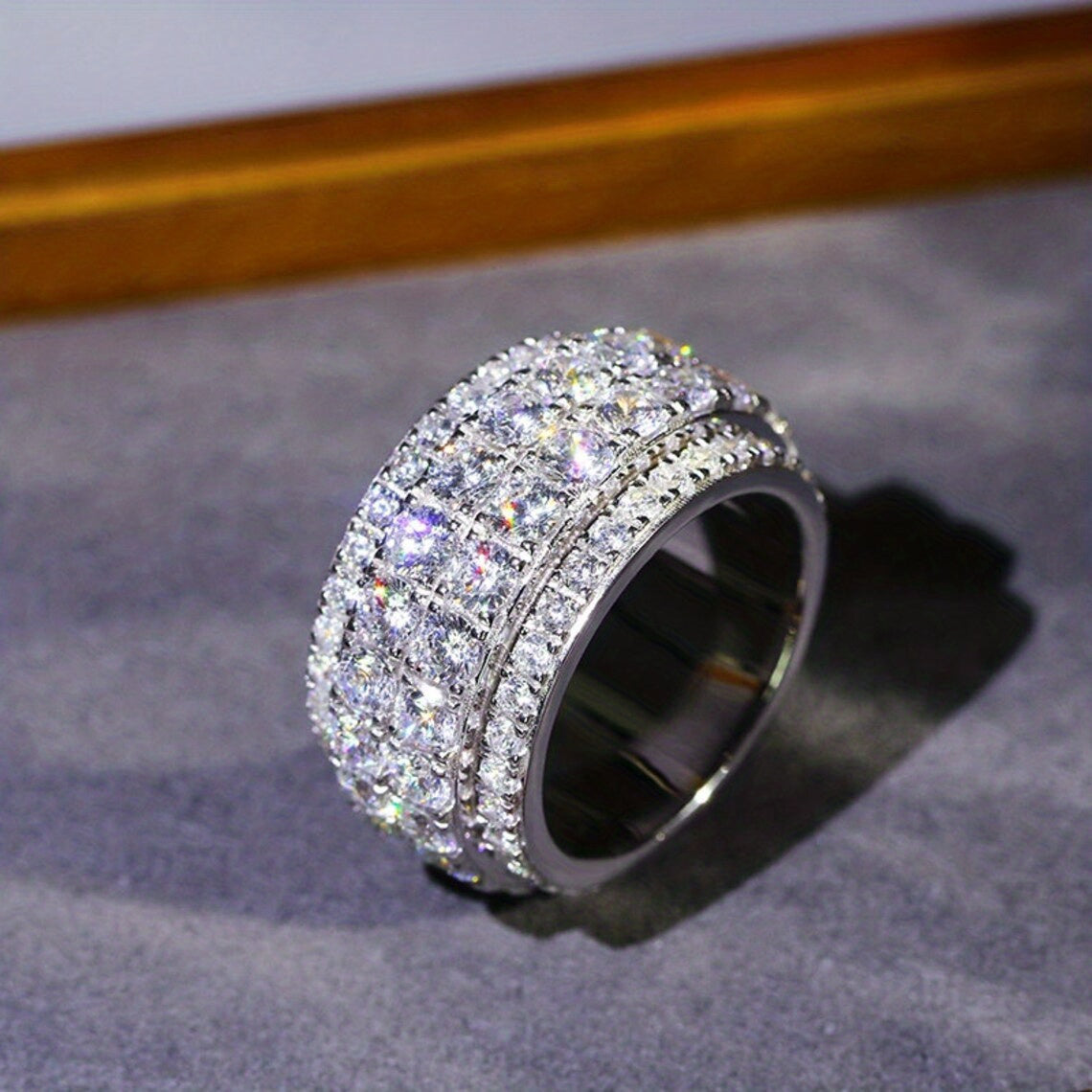 This stunning ring features micro pave cubic zirconia stones, making it perfect for weddings, parties, or as a gift. The ring is made of copper with silvery plating, and the zirconia stones add a touch of sparkle.