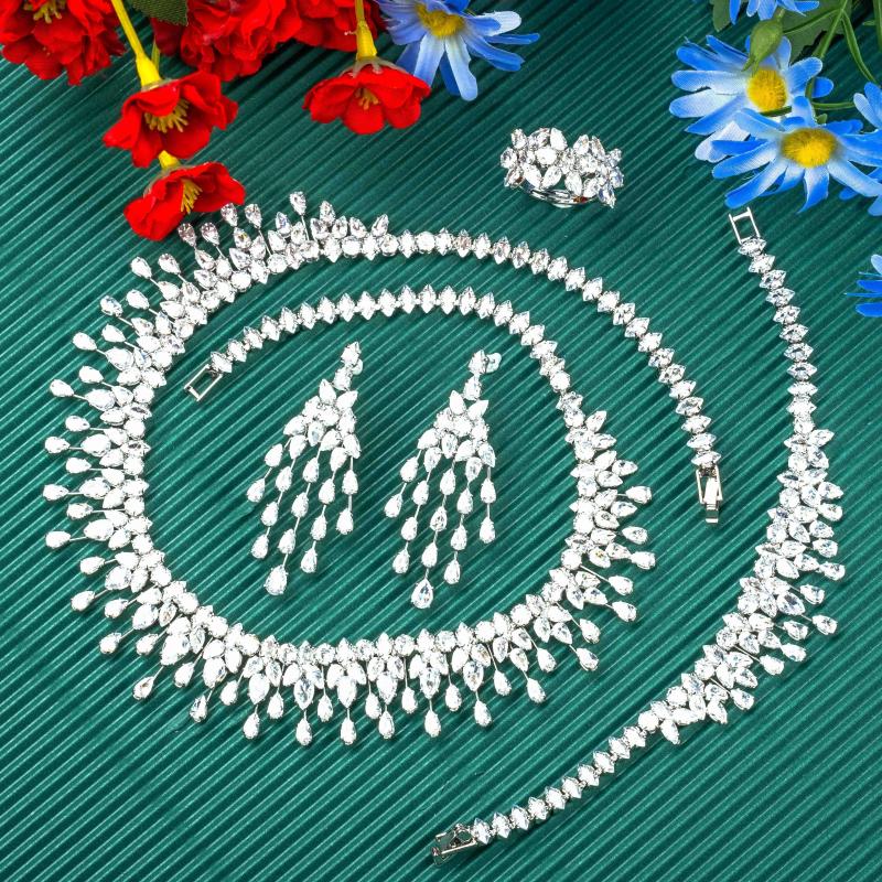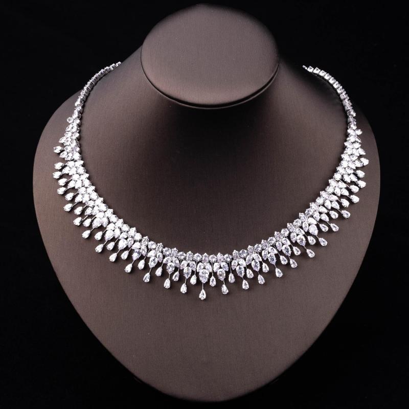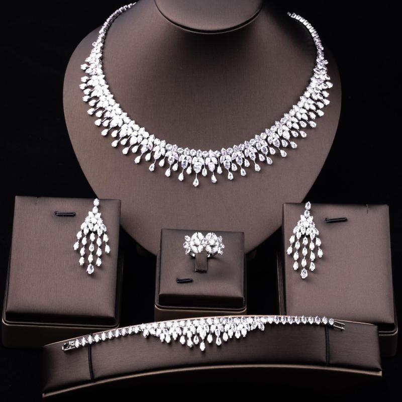 Enhance your bridal look with this stunning Middle Eastern Zirconia jewelry set. The set includes an 18K golden plated pendant necklace and earrings.