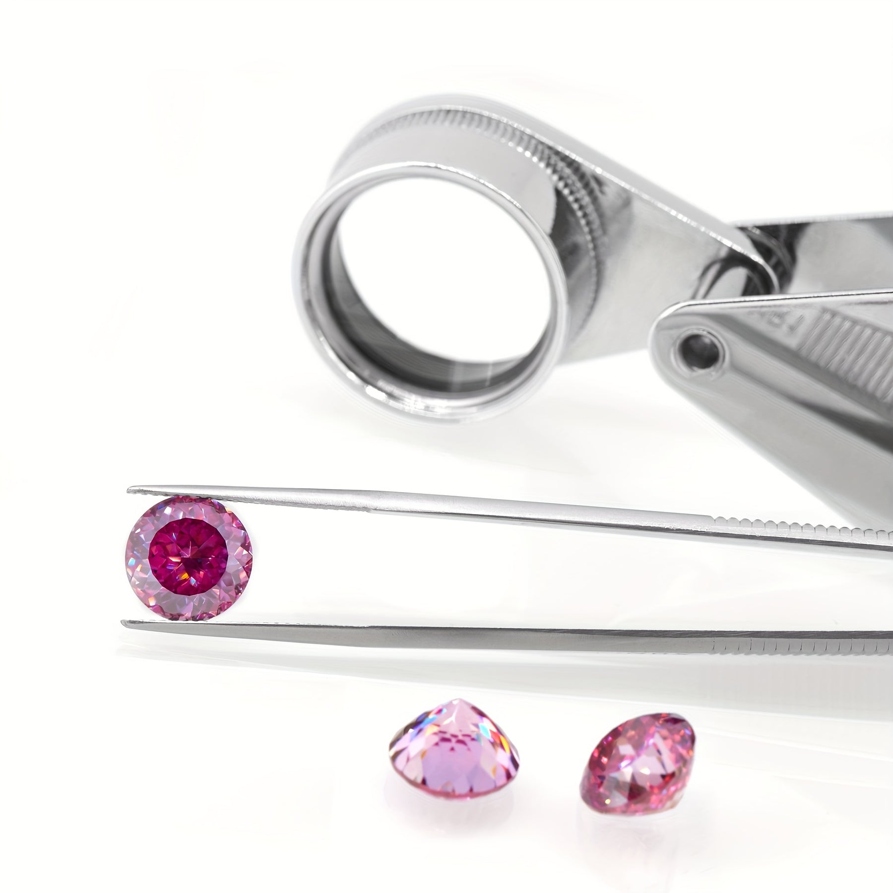 • 1ct round Bird's Nest cut pink Moissanite stone