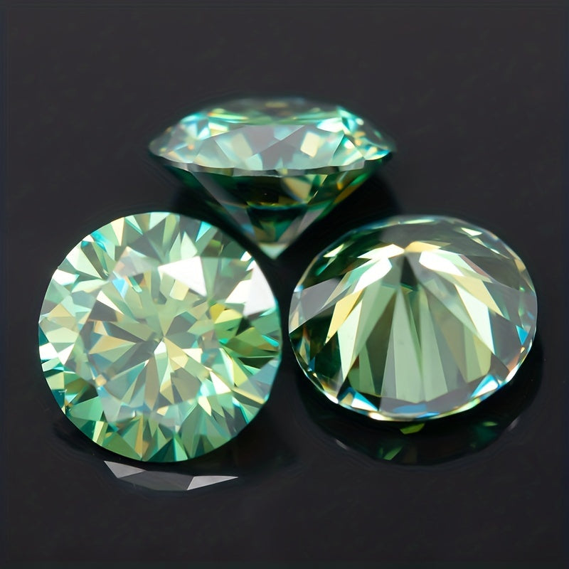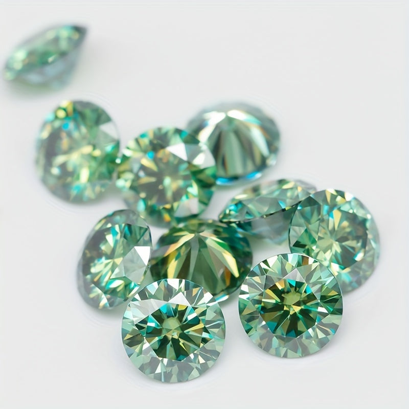 This round light green Moissanite diamond is a stunning loose stone perfect for jewelry. It can be easily detected by a diamond detection pen.