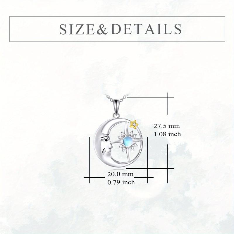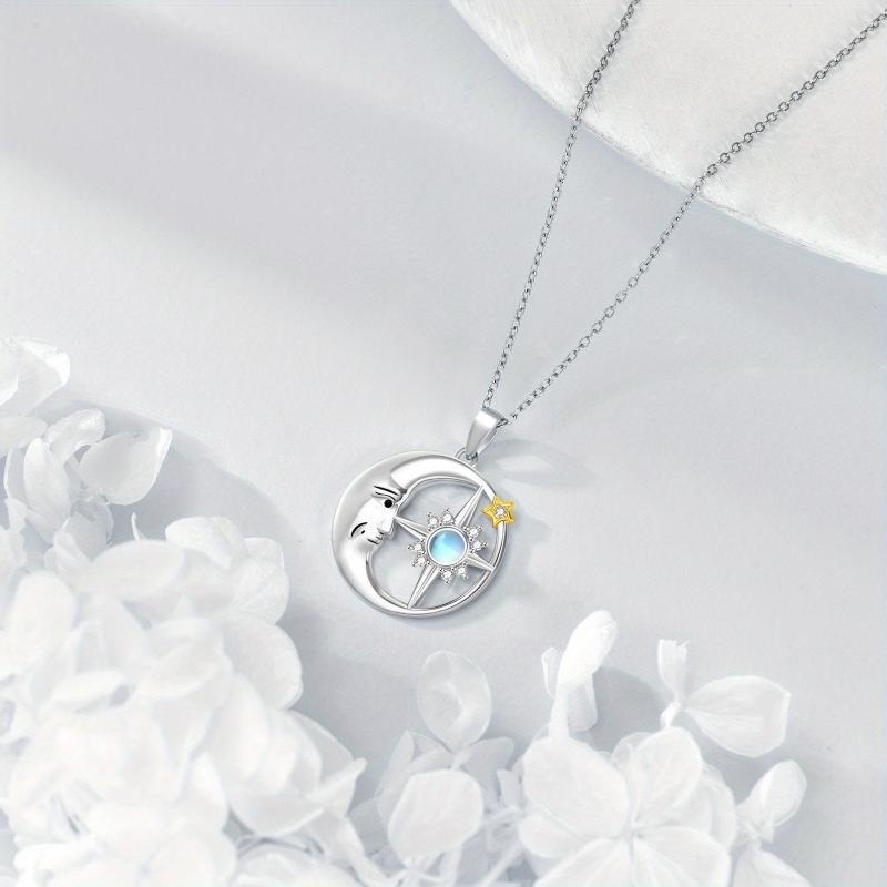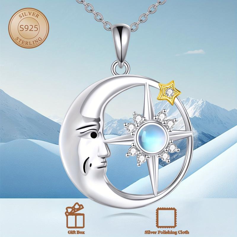 Moon & Star Necklace 925 Silver Moonstone Pendant Jewelry Gift for Women