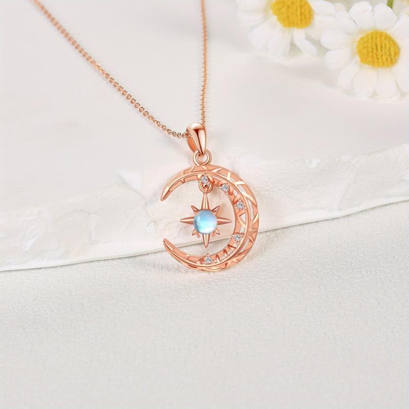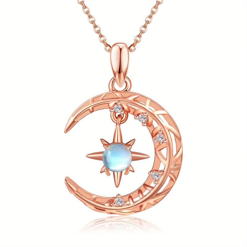 This sterling silver necklace features a moon and star pendant, making it a unique and meaningful gift for women.