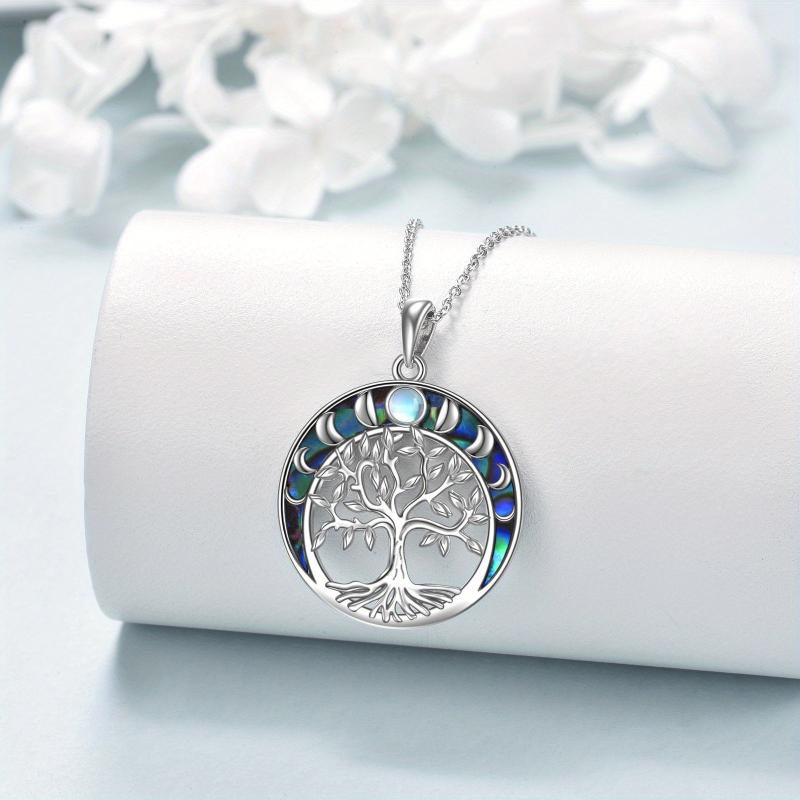 Embrace the mystical charm of this Moonstone Celtic Knot pendant necklace crafted in 925 Sterling Silver. The Tree of Life design adds a touch of elegance, making it a perfect jewelry piece for women.