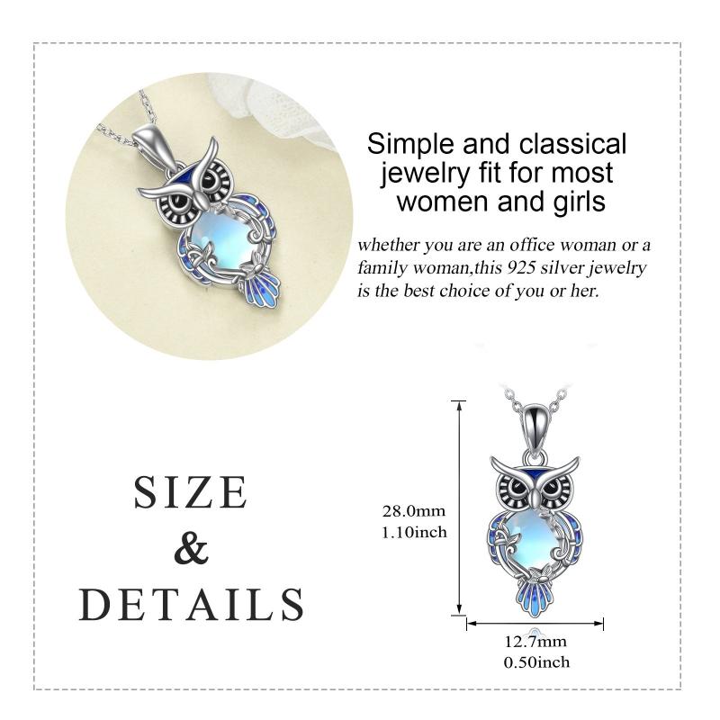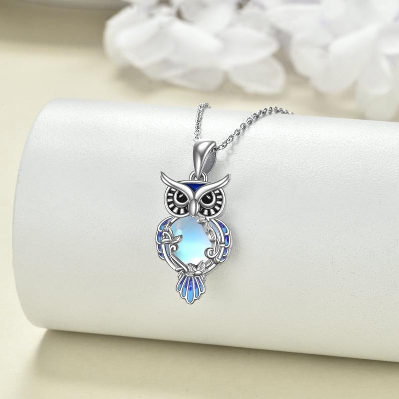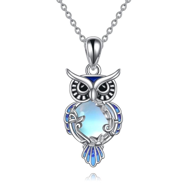 Sterling silver necklace featuring a moonstone owl filigree pendant.