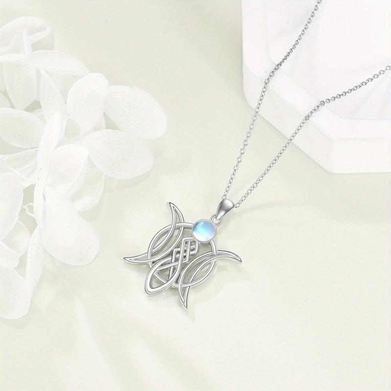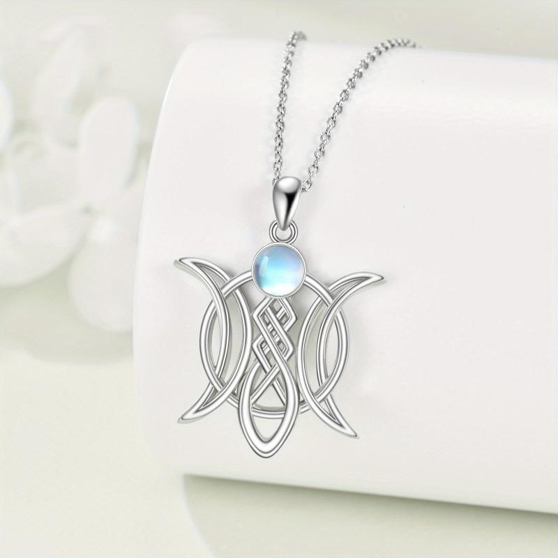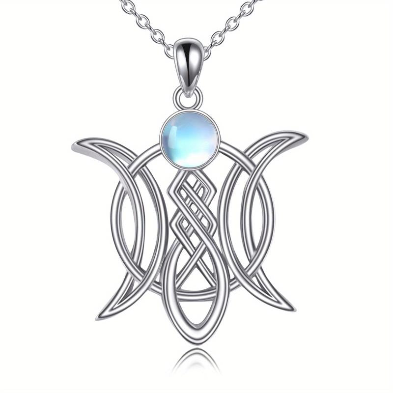 Embrace a mystical vibe with this enchanting triple moon necklace crafted from 925 sterling silver and adorned with a moonstone. Perfect for those drawn to Pagan or Wiccan beliefs.