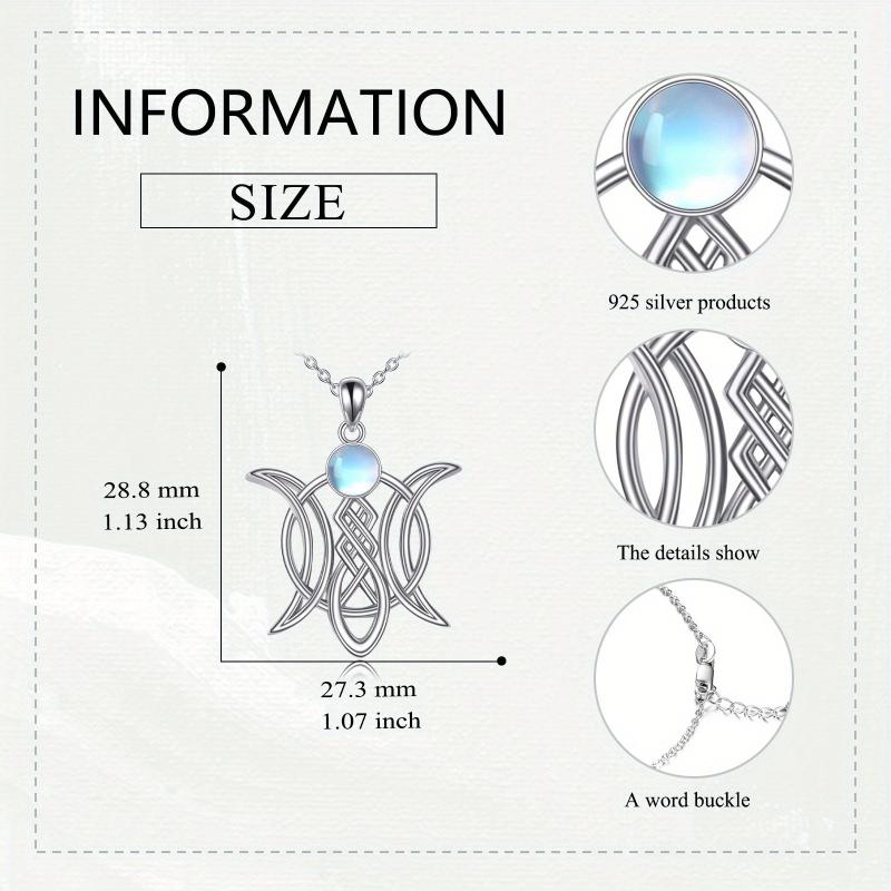 Moonstone Triple Moon Necklace 925 Sterling Silver Pagan Wiccan Jewelry