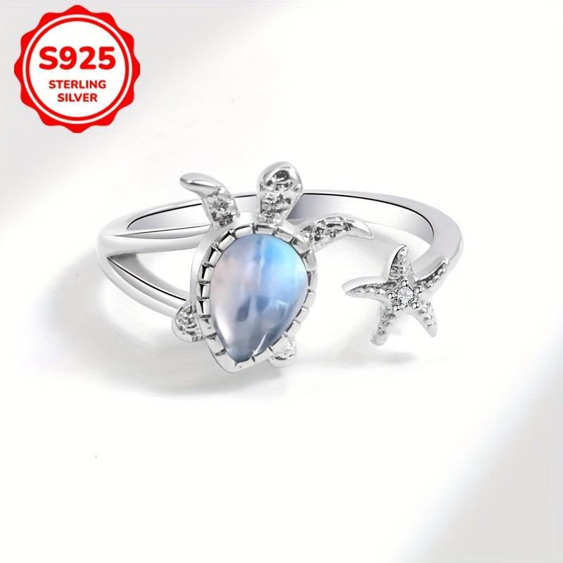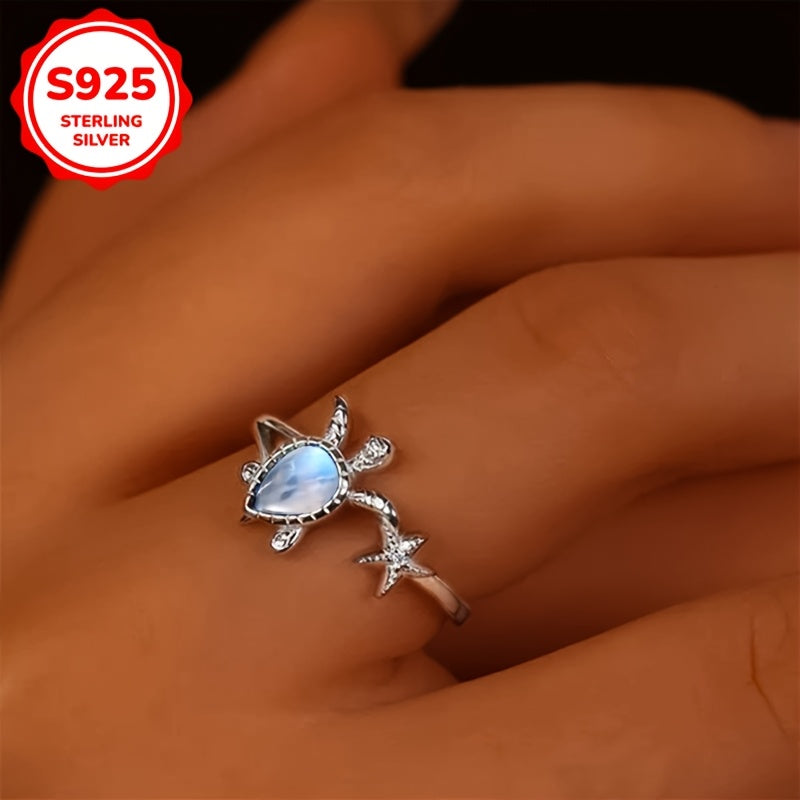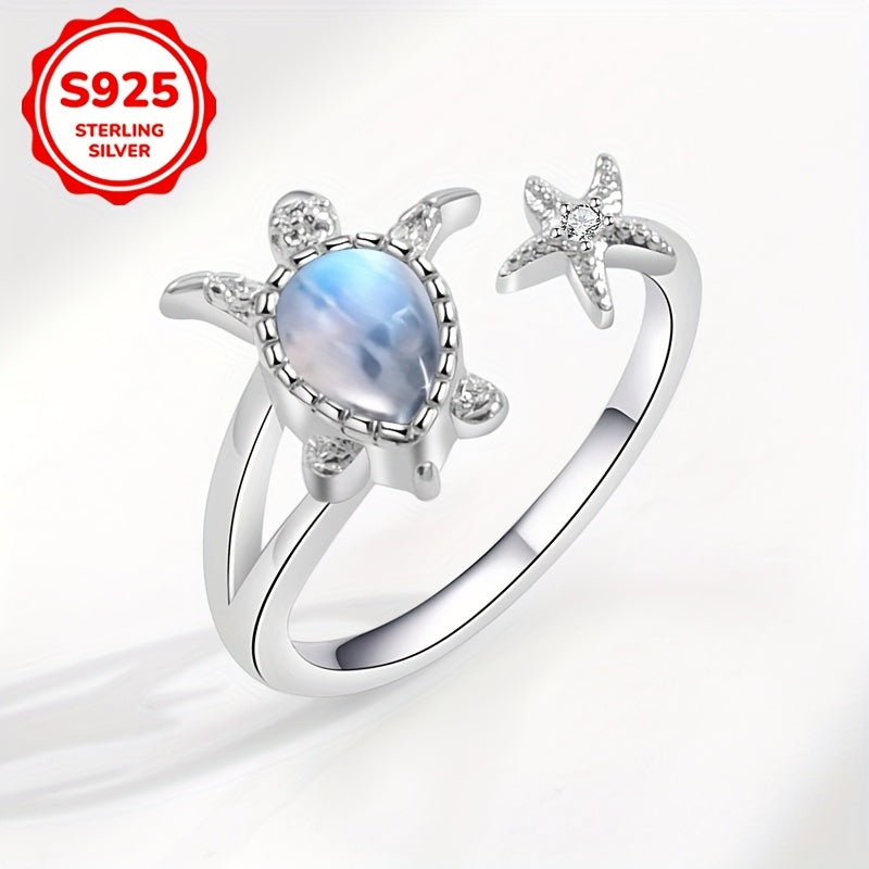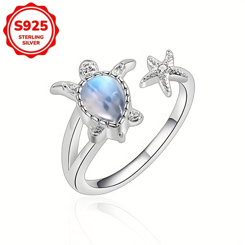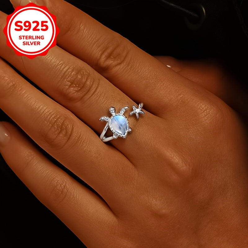 Elegant and trendy ring set featuring a moonstone star opening ring and a fashionable turtle design. Perfect for daily wear, banquets, dates, parties, vacations, and festivals.