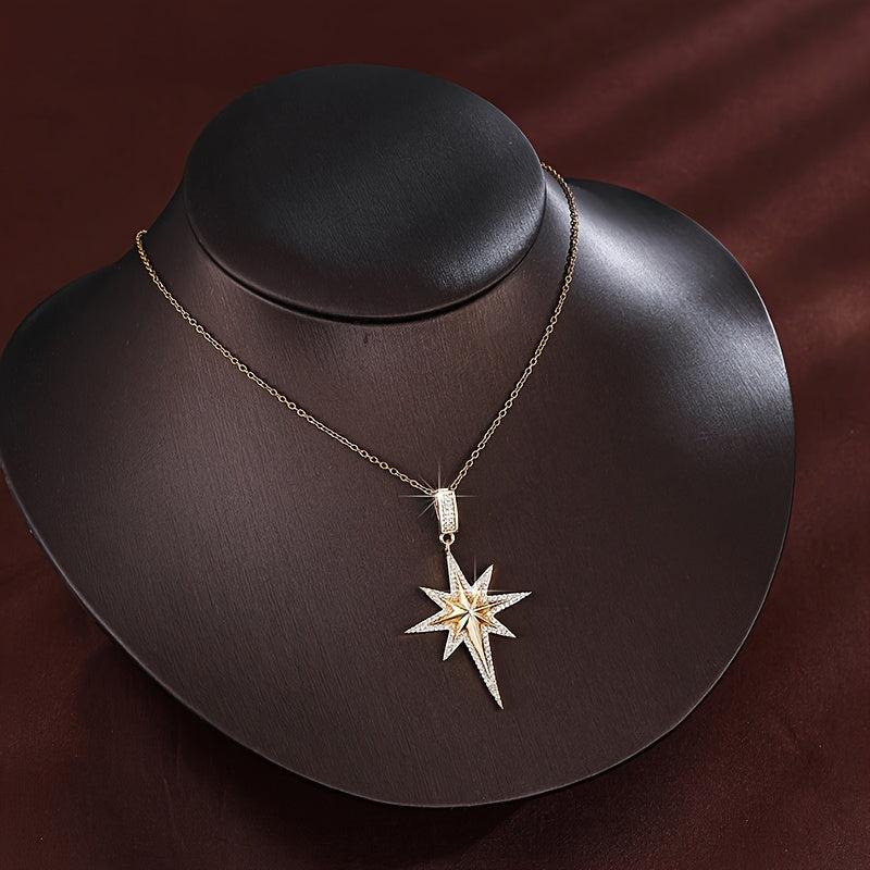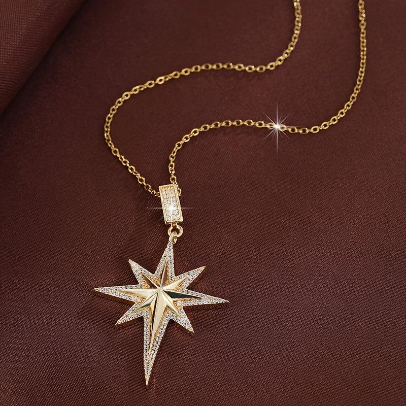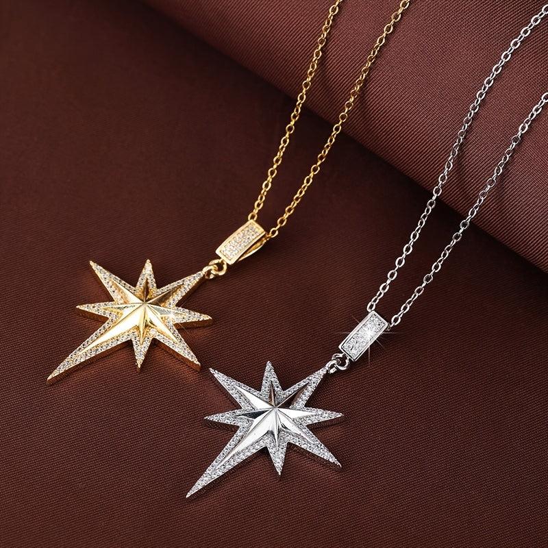 This stylish necklace features an octagonal star design with synthetic zirconia. Perfect for casual wear or as a gift for someone special.