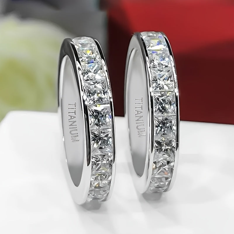 Elegantly crafted titanium ring with sparkling cubic zirconia inlay, perfect for engagements and special occasions.
