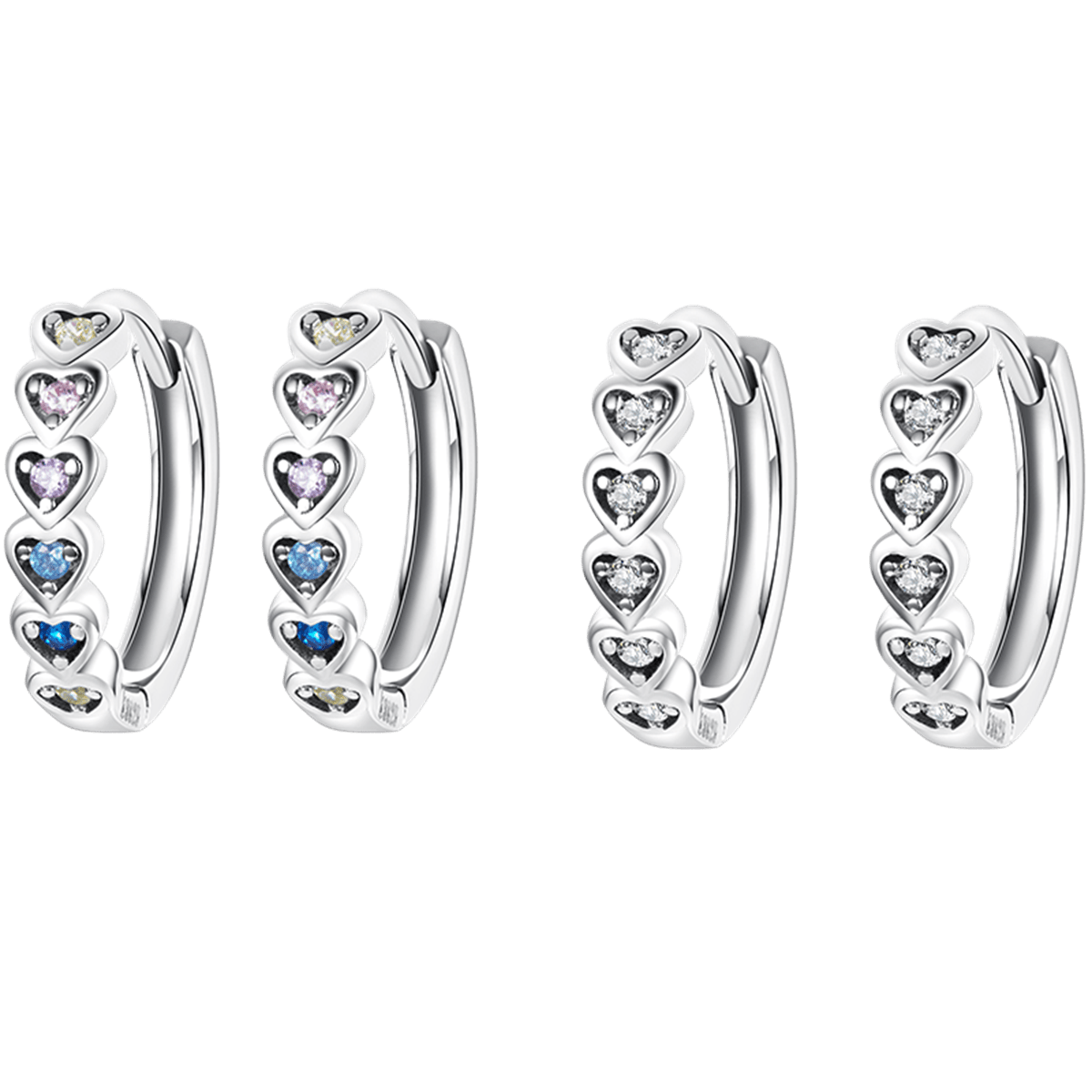 PANPOKI 925 Silver Colorful Heart Zircon Stud Earrings