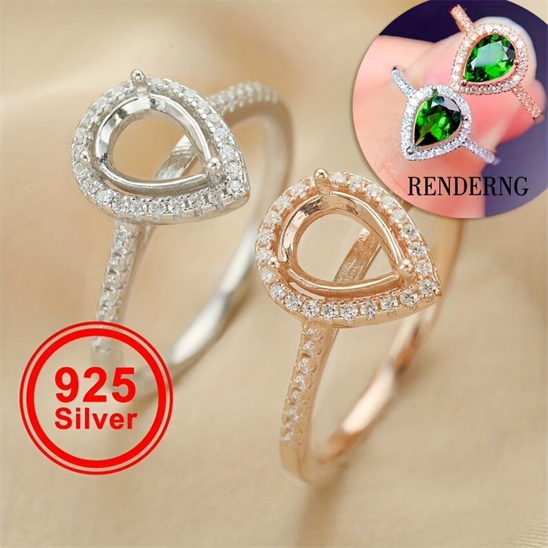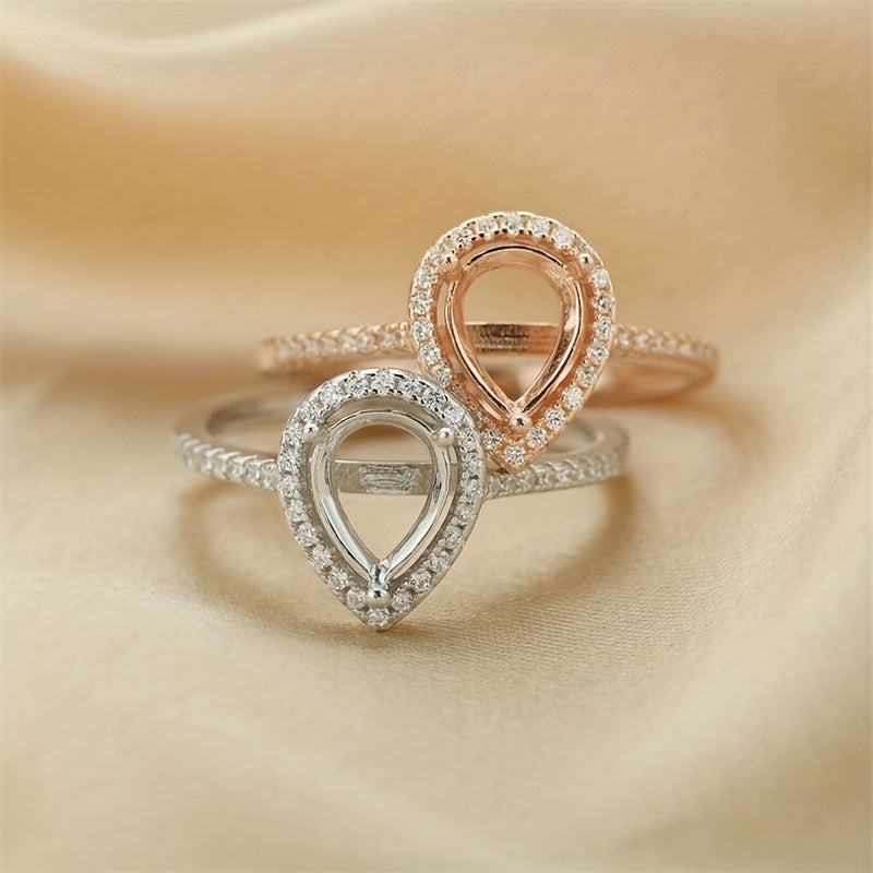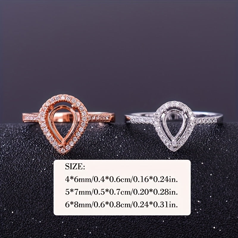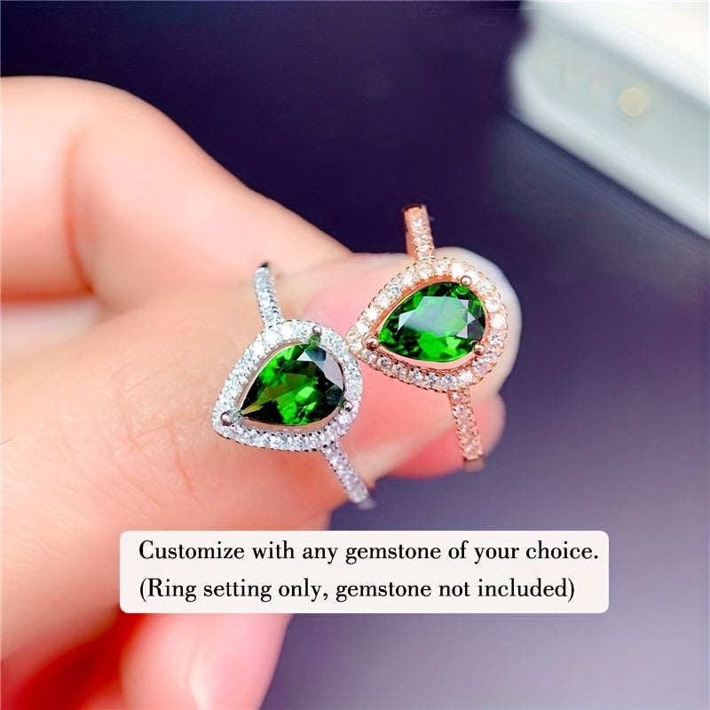 Get this droplet pear shape ring setting in silver or rose gold. Made of solid 925 sterling silver, perfect for gemstone DIY projects.