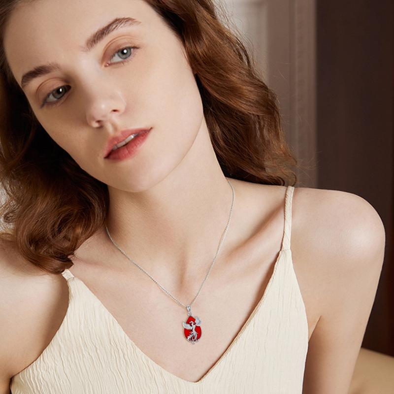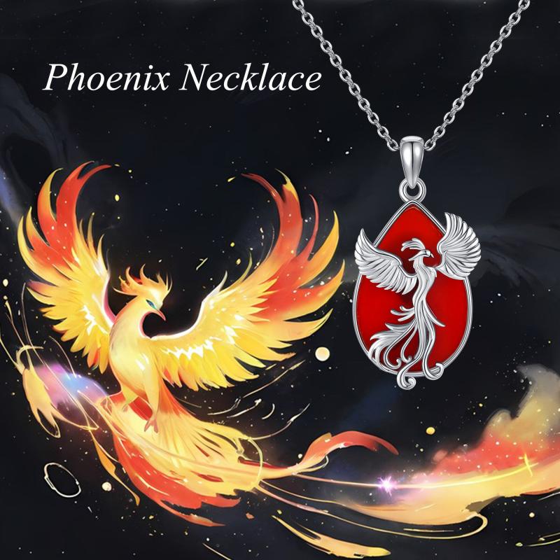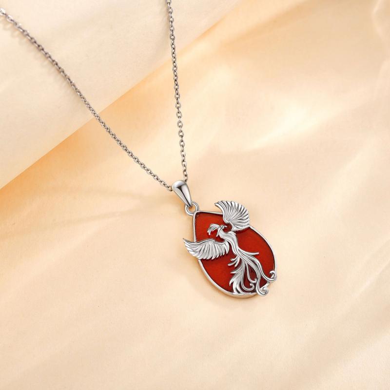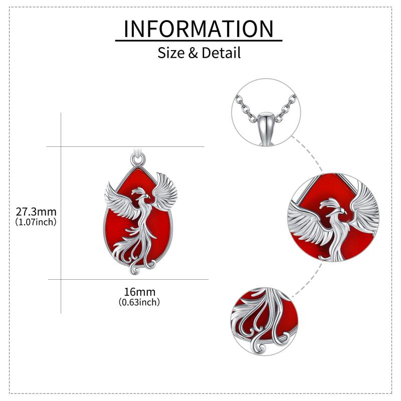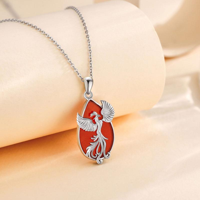 • 925 sterling silver Phoenix Necklace with red agate bird pendant