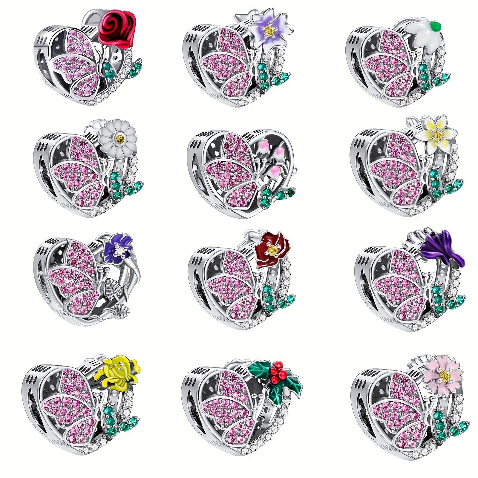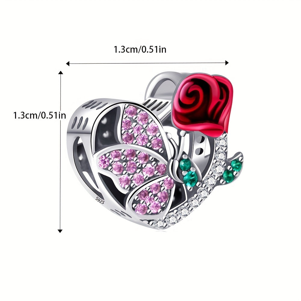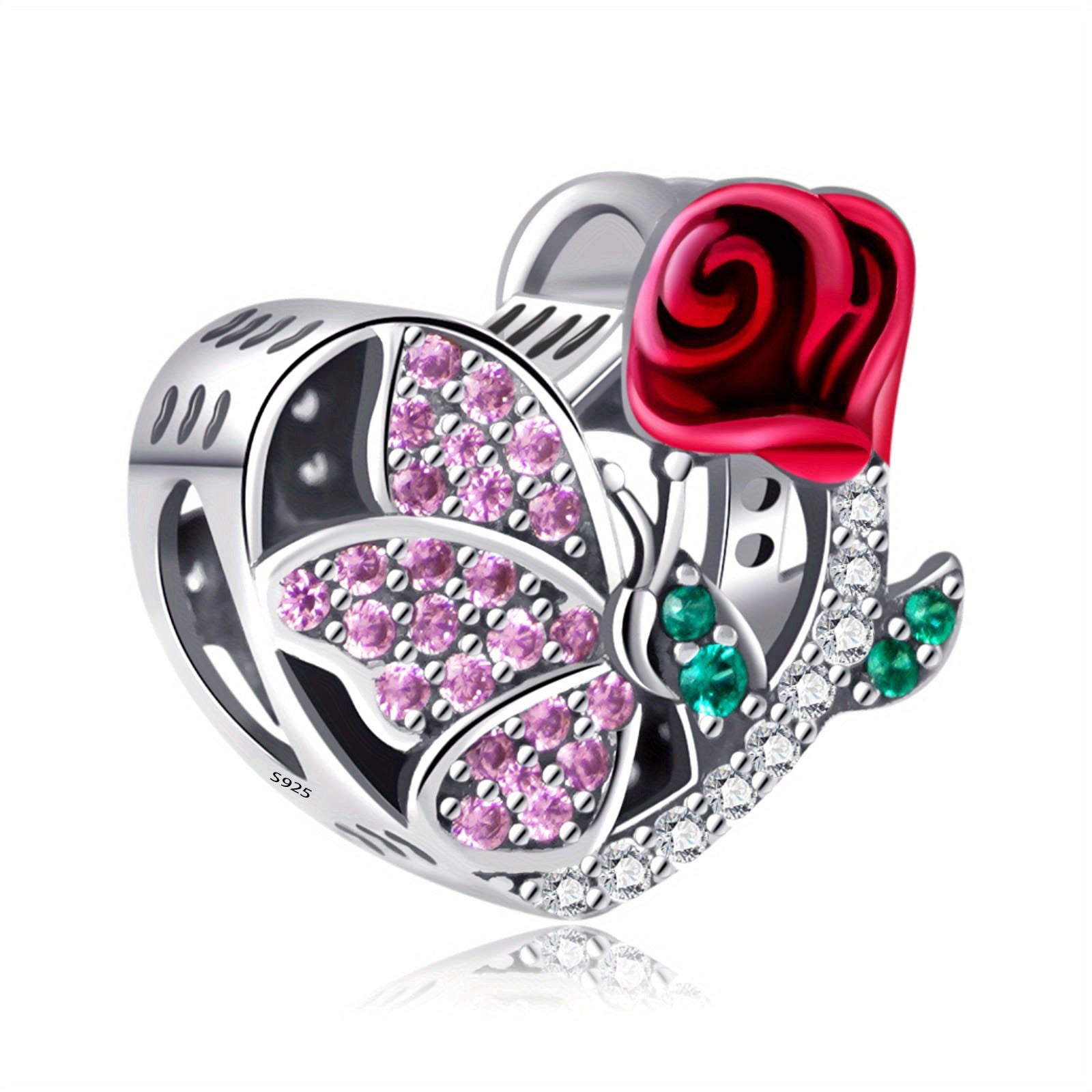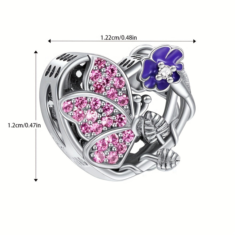 Add a touch of elegance to your creations with this heart-shaped large hole bead featuring a pink rhinestone butterfly and colorful enamel flower design. Perfect for bracelets and necklaces.