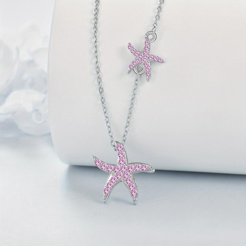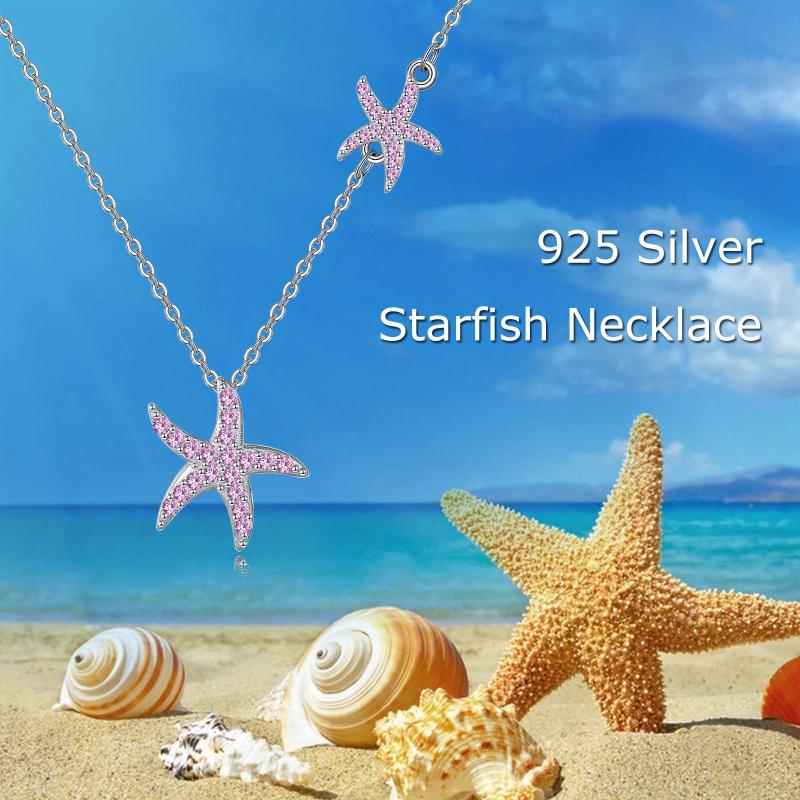Pink Starfish Necklace Sterling Silver Ocean Pendant Beach Jewelry