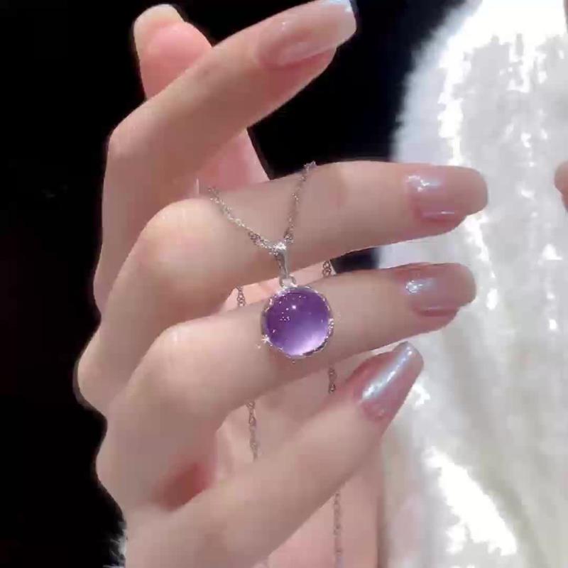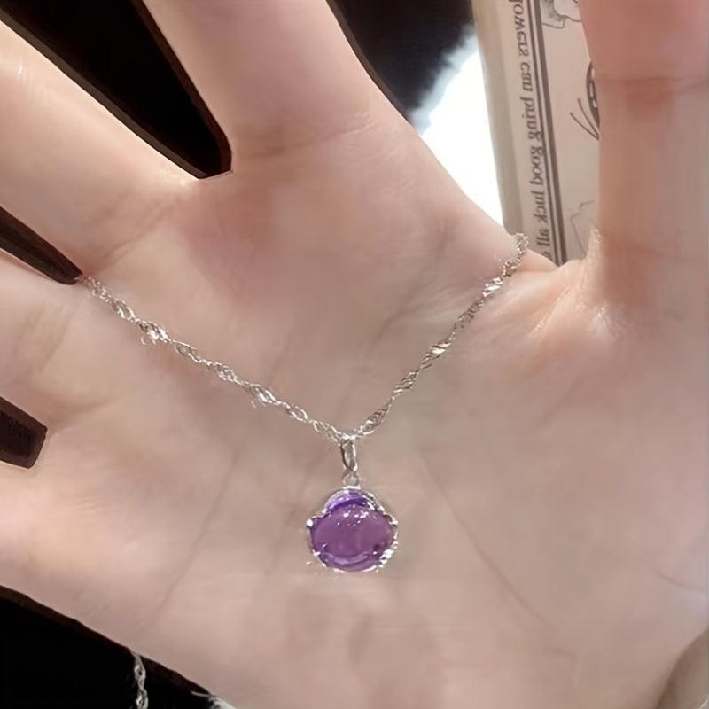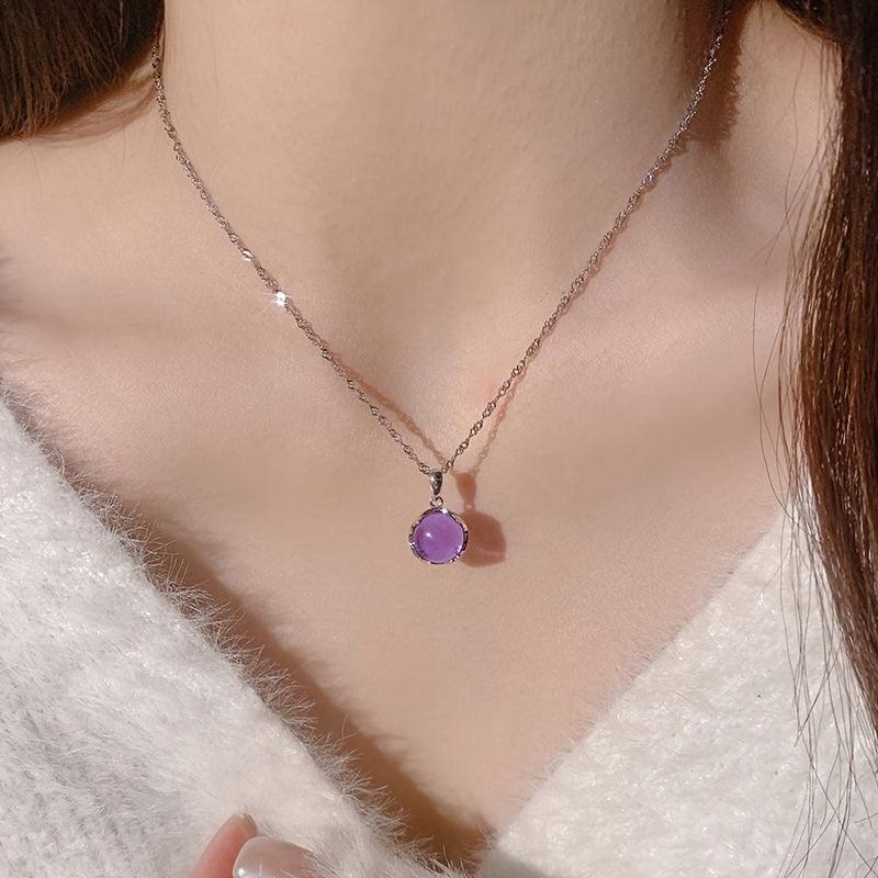 Purple Round Pendant Necklace for Women
