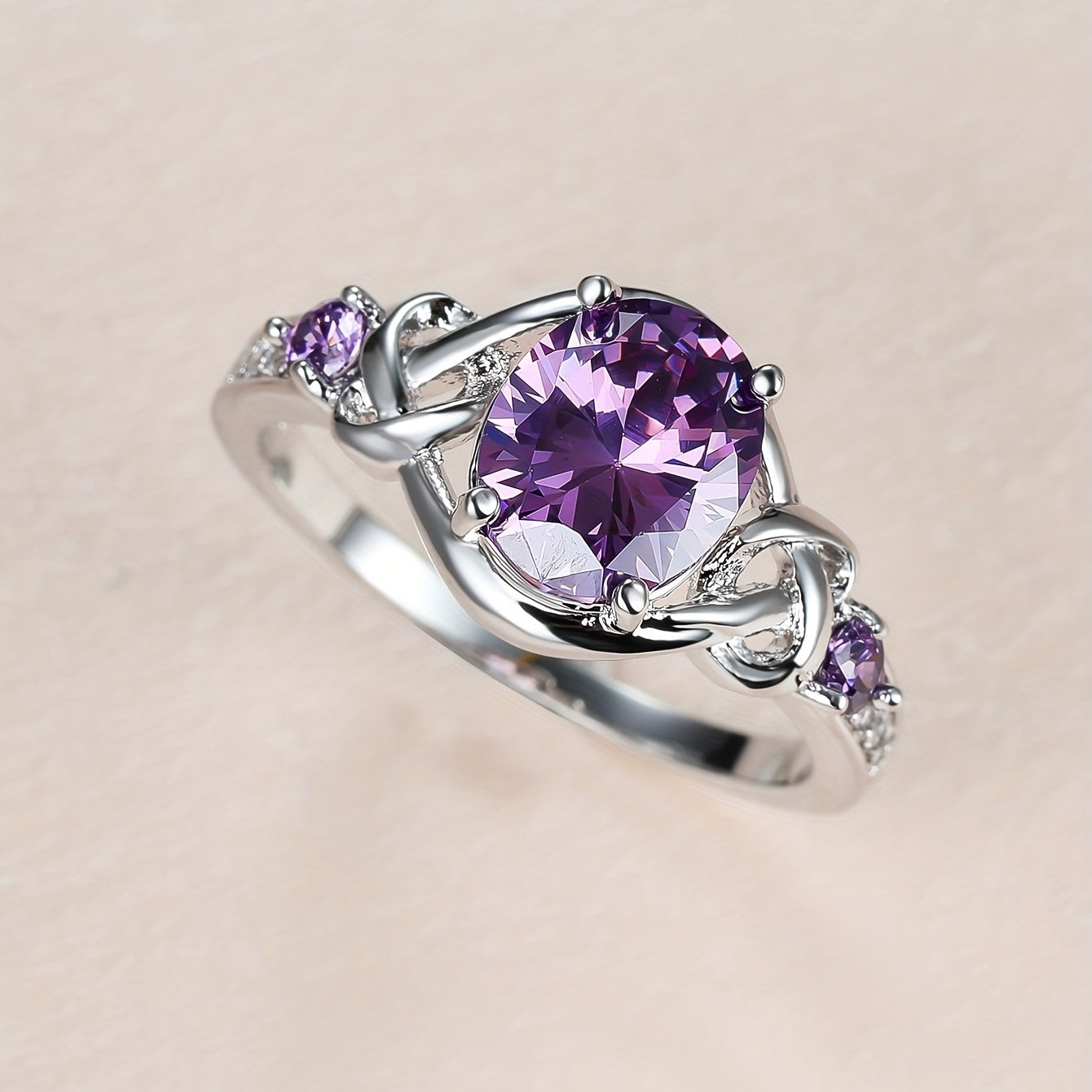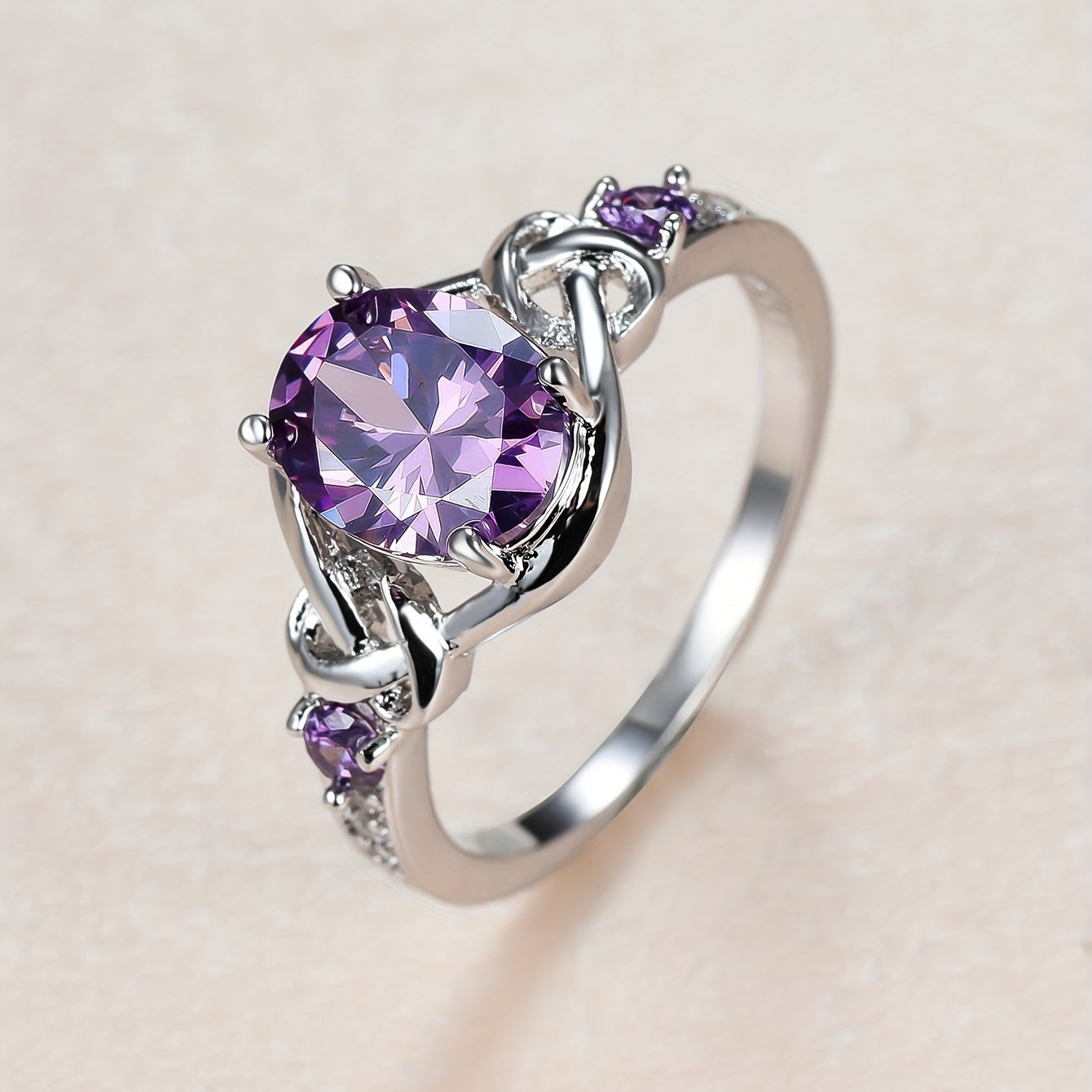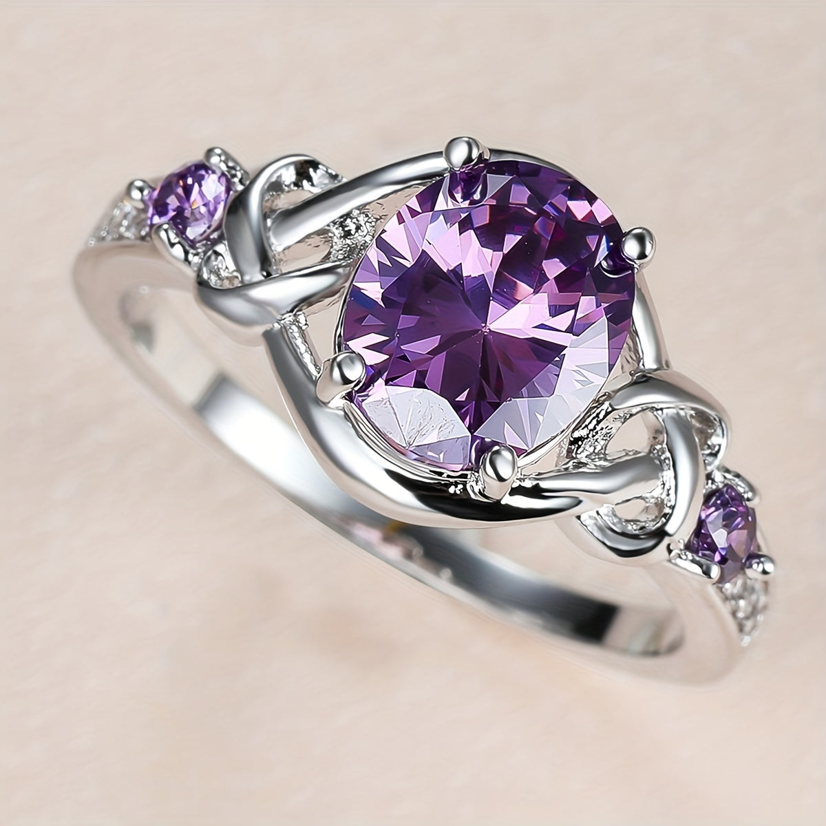 Elegant and alluring purple zirconia ring featuring a mysterious cross design, perfect for bridal marriage and engagement ceremonies.