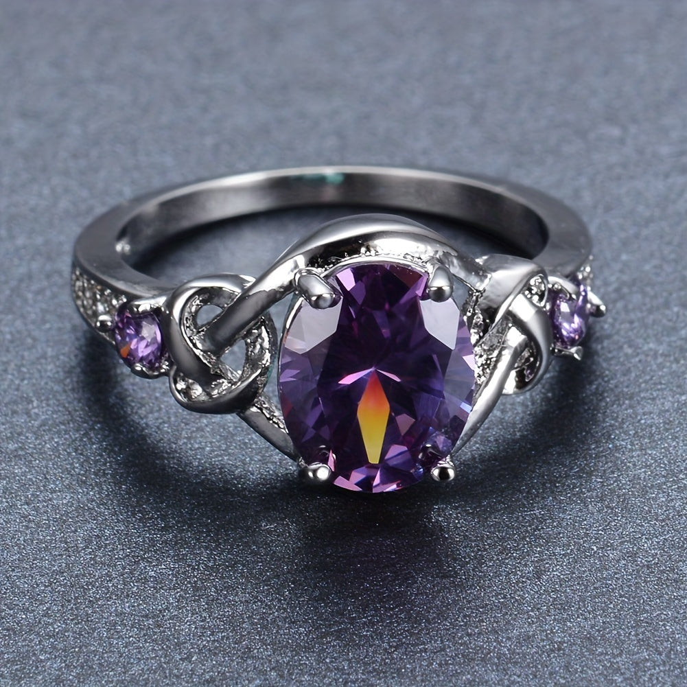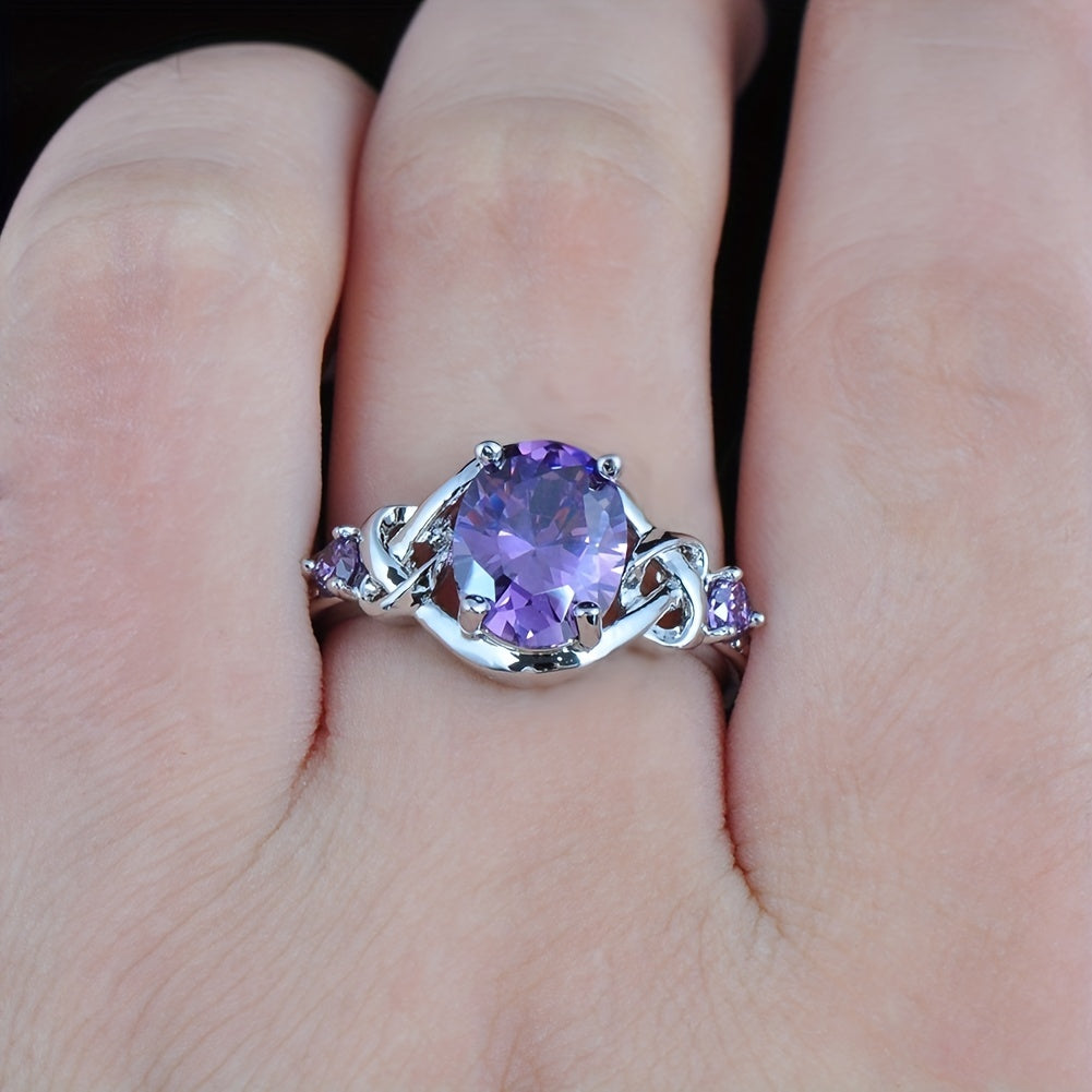 Purple Zirconia Ring with Mysterious Cross for Bride's Marriage
