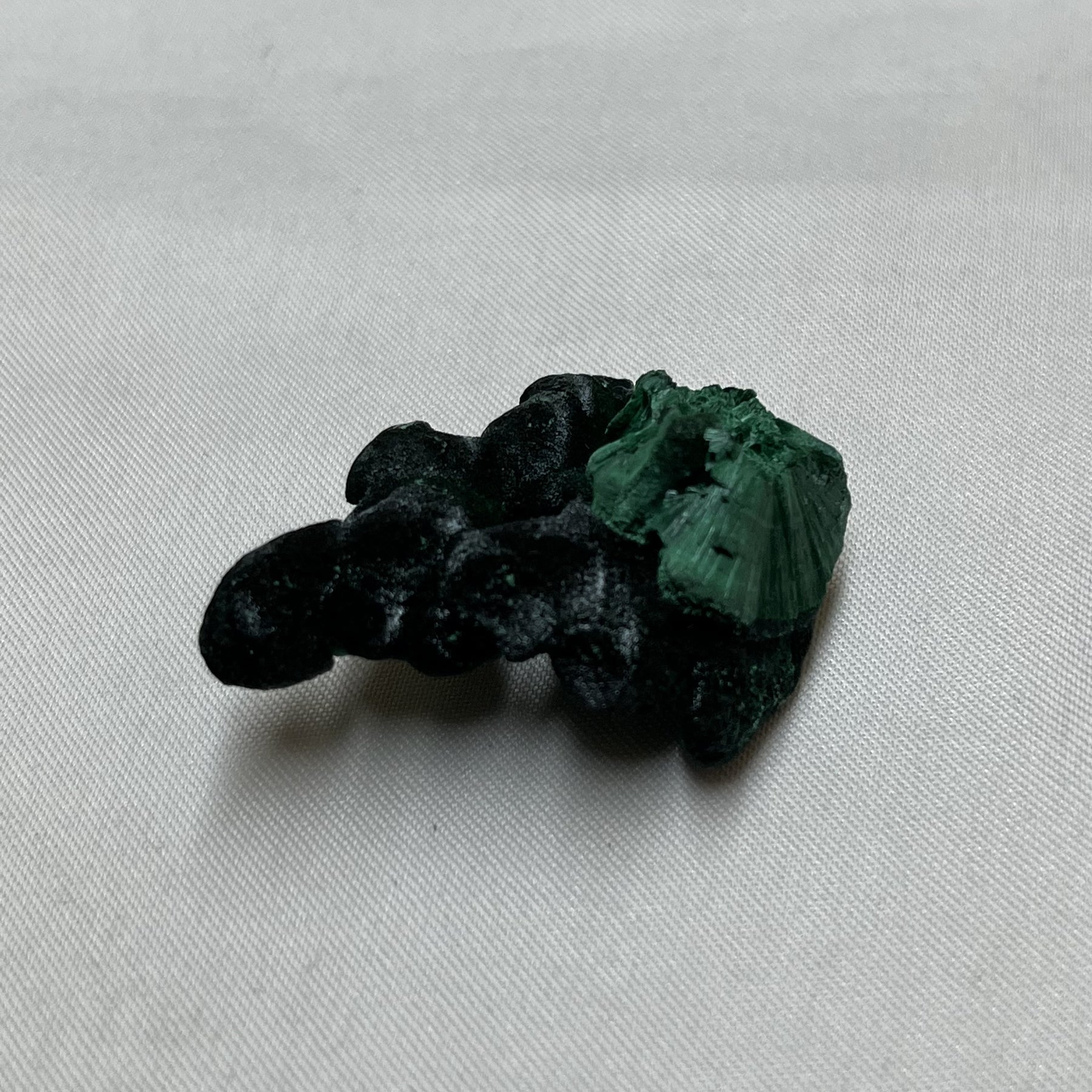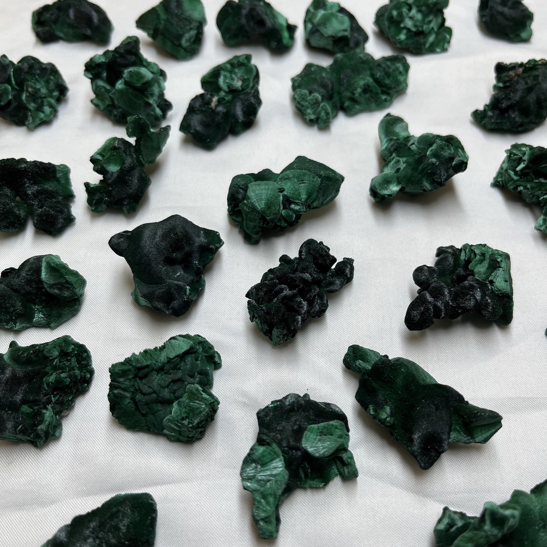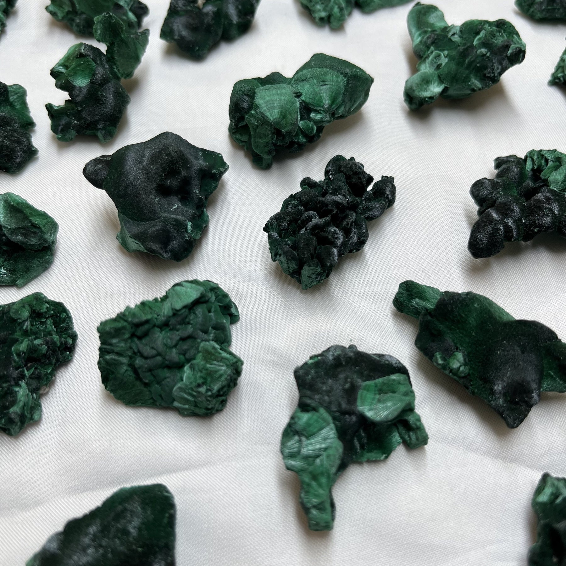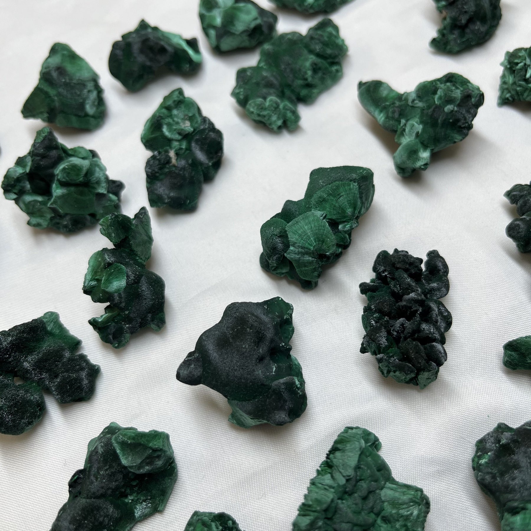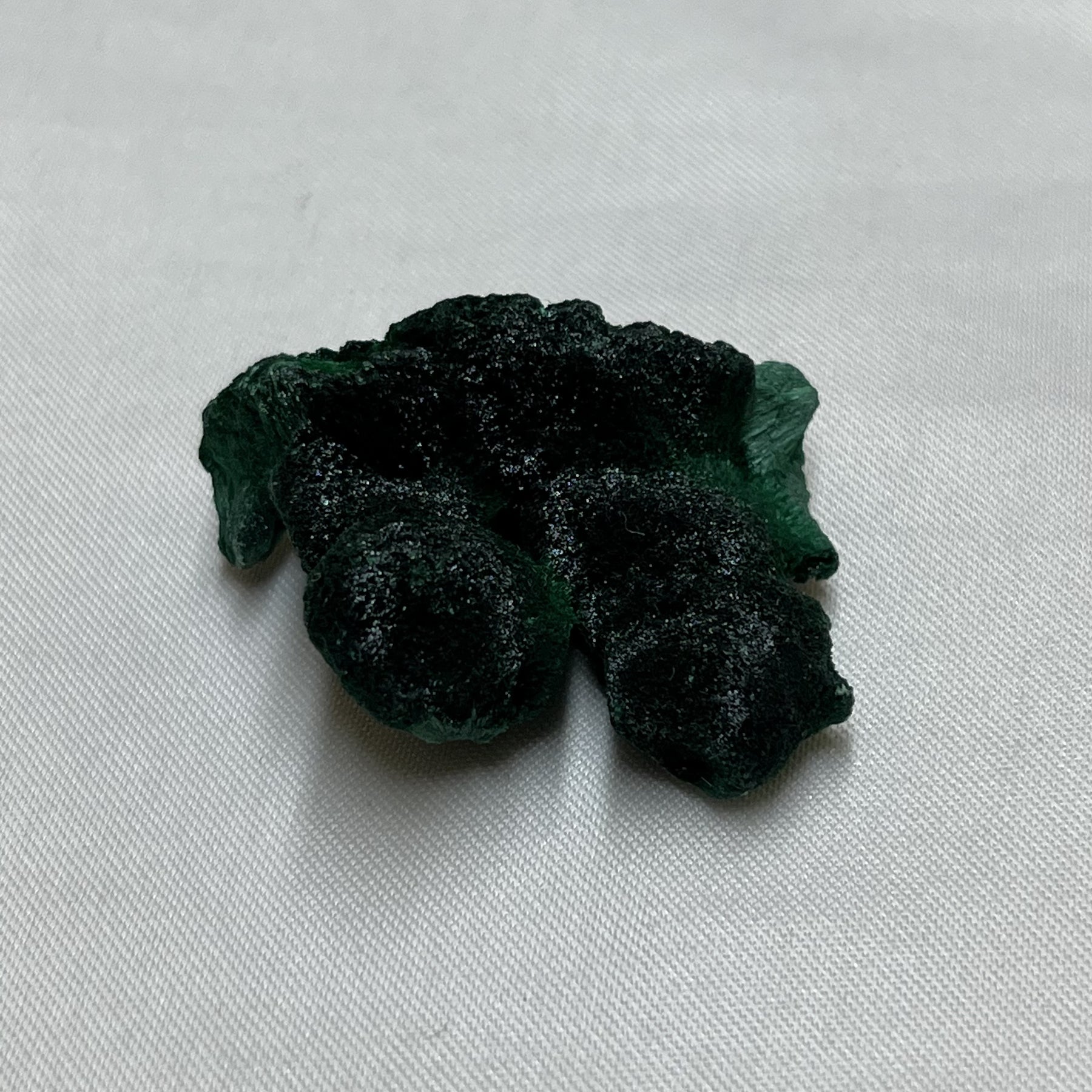 This natural raw velvet malachite crystal specimen showcases a stunning cat's eye effect. Use it for energy healing and crystal healing practices.